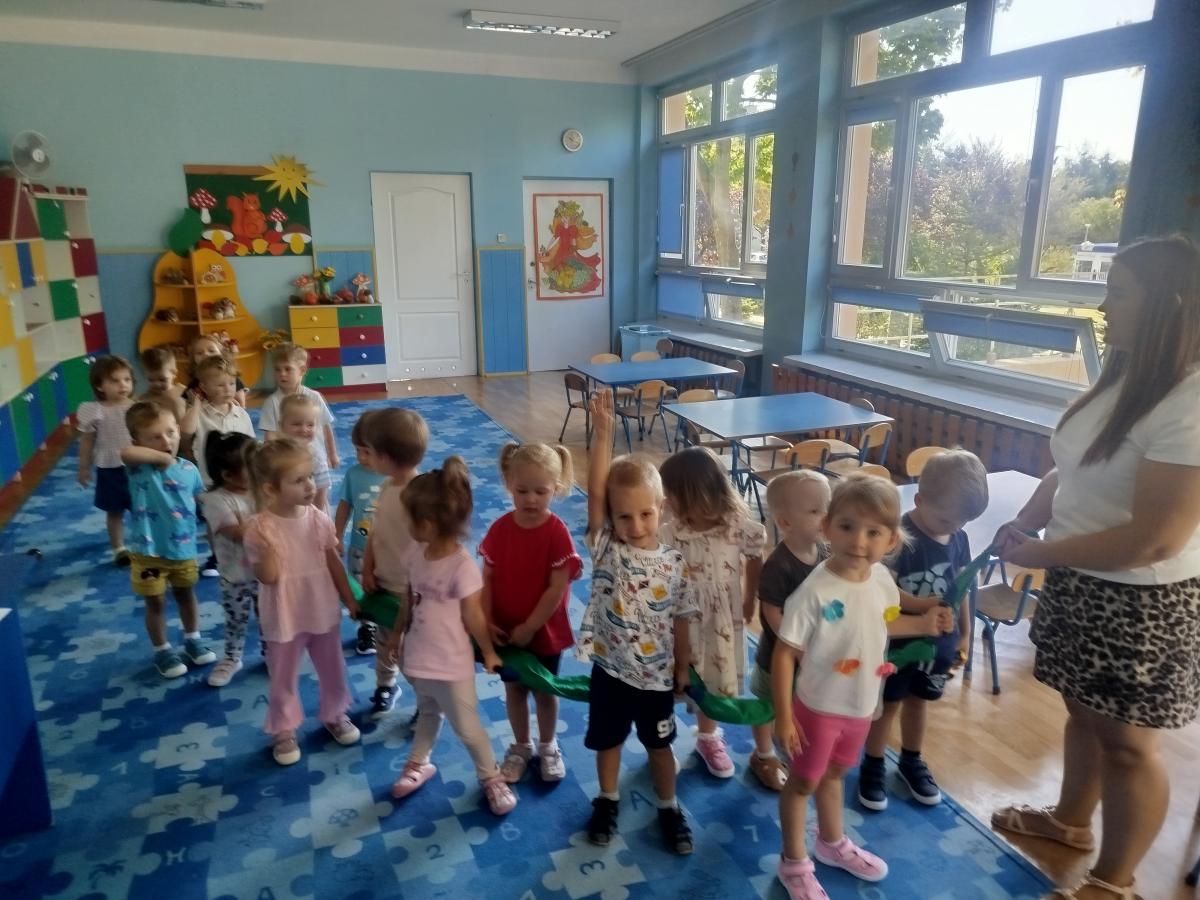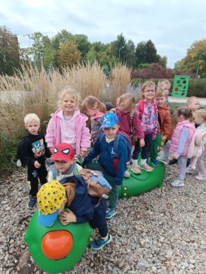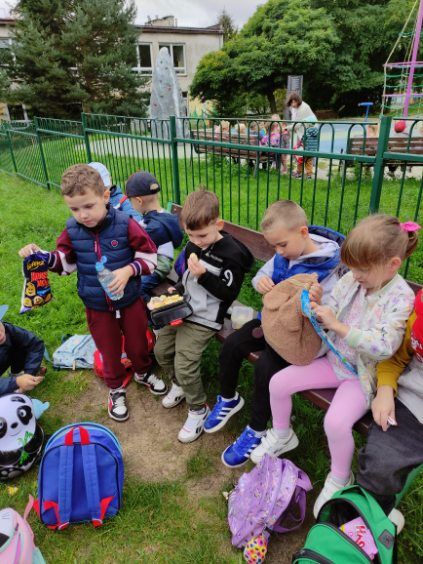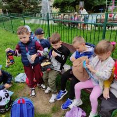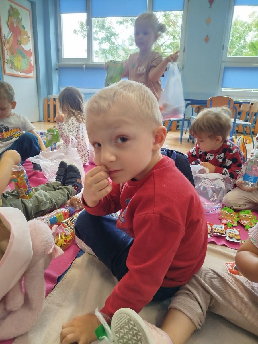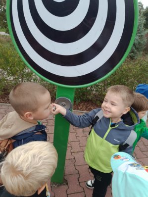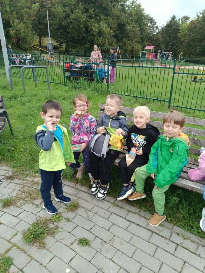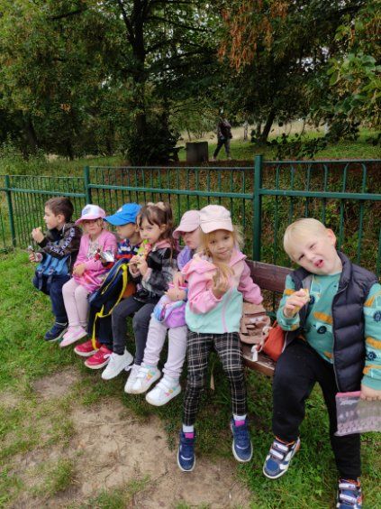 W piątek, 19 września, w  przeddzień swojego święta - Dnia Przedszkolaka, dzieci z oddziałów II i III, czyli "średniaki" wzięły udział w spacerze do pobliskiego Parku im. A. Dygasińskiego. Głównym punktem wyprawy było dotarcie do "Skweru Sensorycznego - mini  ogrodu sensorycznego dla dzieci”, którego podstawowym celem  jest pobudzanie zmysłów: dotyku, wzroku, zapachu i słuchu poprzez kontakt ze znajdującą się tu roślinnością. Na terenie skweru dzieci bawiły się zabawkami edukacyjnymi, dzięki którym poznały iluzję optyczną. Były to: "Czyja to twarz?”, "Panel sensoryczny” i koło optyczne z korbką. Zabawa w tym miejscu sprawiła dużo frajdy dzieciakom - obiecały, że jeszcze tu wrócą, ale tym razem z rodzicami! A później był czas na długo oczekiwany "piknik”. Wspólna wędrówka, zabawa i posiłek na świeżym powietrzu to jest to, co przedszkolaki - "średniaki” lubią najbardziej!  Nasze najmłodsze przedszkolaki z oddziału I wyruszyły na spacer wokół przedszkola.  Były też wspólne zabawy w sali i oczywiście piknik - szkoda, że nie na świeżym powietrzu, tylko w sali, ale trawa była mokra. Poczęstunek z własnych plecaków osłodził ten wyjątkowy dzień.  Z okazji Waszego święta, kochane Przedszkolaki, życzymy Wam, aby uśmiech zawsze gościł na Waszych buziach i każdy dzień był wspaniałą przygodą, jak ta wyprawa. Niech Wasze wszystkie życzenia się spełniają!