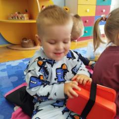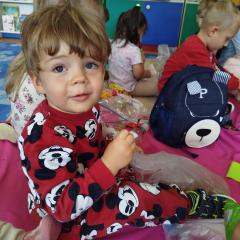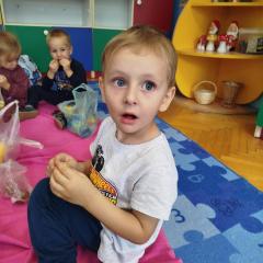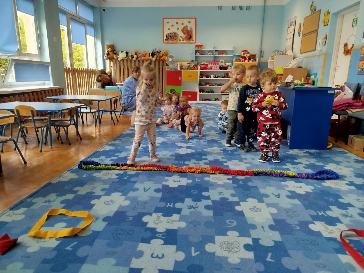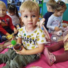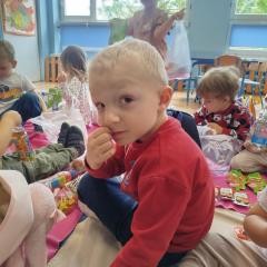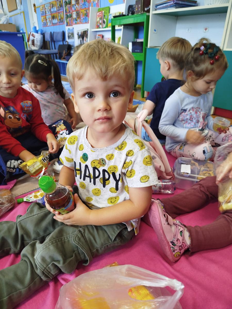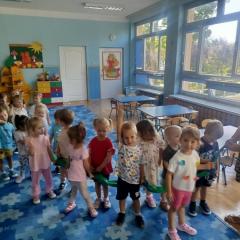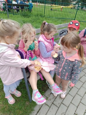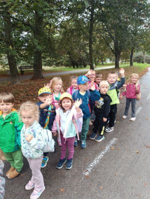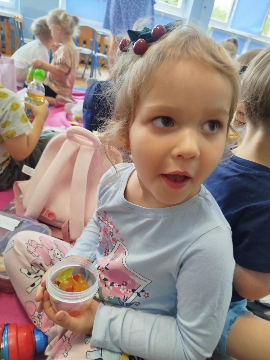 W piątek, 19 września, w  przeddzień swojego święta - Dnia Przedszkolaka, dzieci z oddziałów II i III, czyli "średniaki" wzięły udział w spacerze do pobliskiego Parku im. A. Dygasińskiego. Głównym punktem wyprawy było dotarcie do "Skweru Sensorycznego - mini  ogrodu sensorycznego dla dzieci”, którego podstawowym celem  jest pobudzanie zmysłów: dotyku, wzroku, zapachu i słuchu poprzez kontakt ze znajdującą się tu roślinnością. Na terenie skweru dzieci bawiły się zabawkami edukacyjnymi, dzięki którym poznały iluzję optyczną. Były to: "Czyja to twarz?”, "Panel sensoryczny” i koło optyczne z korbką. Zabawa w tym miejscu sprawiła dużo frajdy dzieciakom - obiecały, że jeszcze tu wrócą, ale tym razem z rodzicami! A później był czas na długo oczekiwany "piknik”. Wspólna wędrówka, zabawa i posiłek na świeżym powietrzu to jest to, co przedszkolaki - "średniaki” lubią najbardziej!  Nasze najmłodsze przedszkolaki z oddziału I wyruszyły na spacer wokół przedszkola.  Były też wspólne zabawy w sali i oczywiście piknik - szkoda, że nie na świeżym powietrzu, tylko w sali, ale trawa była mokra. Poczęstunek z własnych plecaków osłodził ten wyjątkowy dzień.  Z okazji Waszego święta, kochane Przedszkolaki, życzymy Wam, aby uśmiech zawsze gościł na Waszych buziach i każdy dzień był wspaniałą przygodą, jak ta wyprawa. Niech Wasze wszystkie życzenia się spełniają!