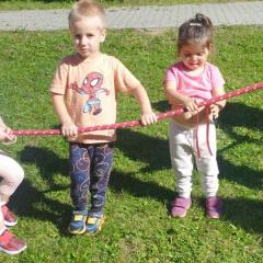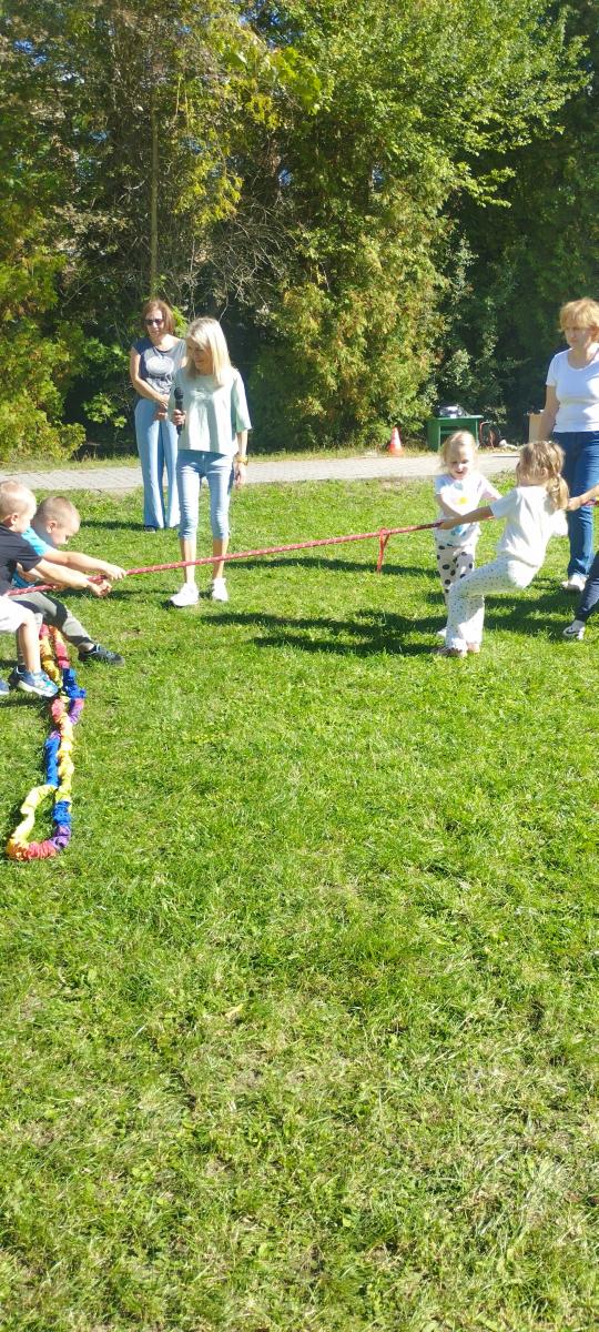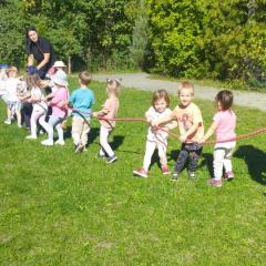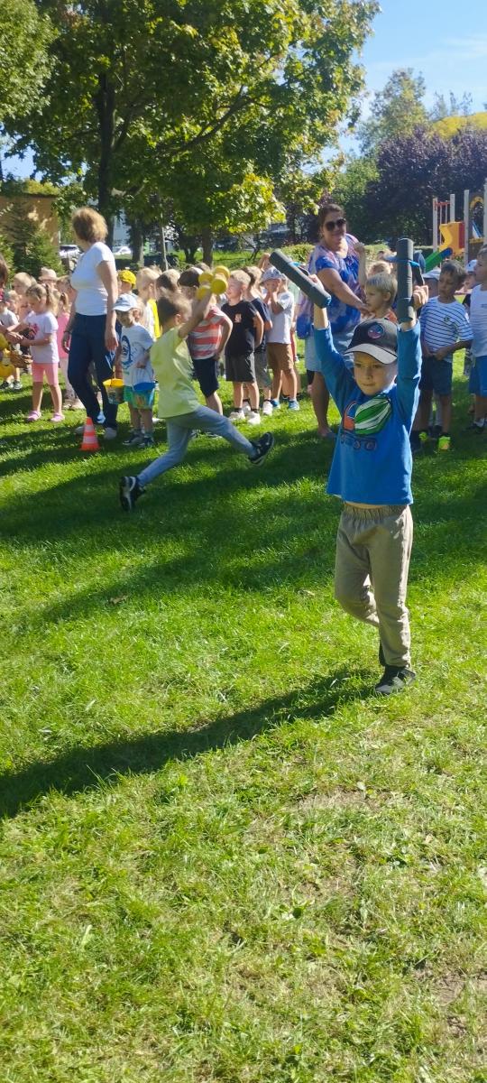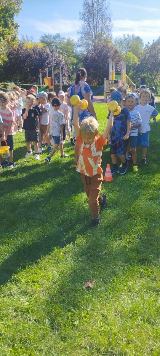 W dniu 22.09.2025 r. rozpoczęliśmy w naszym przedszkolu Europejski Tydzień Sportu. Pierwszy dzień upłynął pod hasłem "Gimnastyka dla Smyka” – trening siłowo – wytrzymałościowy. Dzieci w sportowych zmaganiach poznały swoje możliwości, świetnie się bawiły przenosząc ciężarki, przeciągając linę.