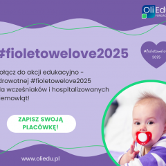 W dniu 17.11.2025 r. (poniedziałek) nasze przedszkole po raz kolejny bierze udział w akcji społeczno - zdrowotnej #fioletowelove, która opiera się na potrzebie propagowania empatii, wsparcia społecznego oraz szerzenia wiedzy i świadomości o wcześniakach. Prosimy Rodziców o ubranie dzieci w tym dniu w strój w odcieniach fioletu (mogą być pojedyncze, symboliczne elementy ubioru). Dodatkowo zachęcamy do okazania gestu solidarności z wcześniakami, wspierając zbiórkę na zakup sprzętu medycznego dla niemowląt. Dowolną kwotę można wpłacać na konto Fundacji OliEdu 07 1600 1462 1713 5448 7000 0001, z tytułem wpłaty: #fioletowelove2025.