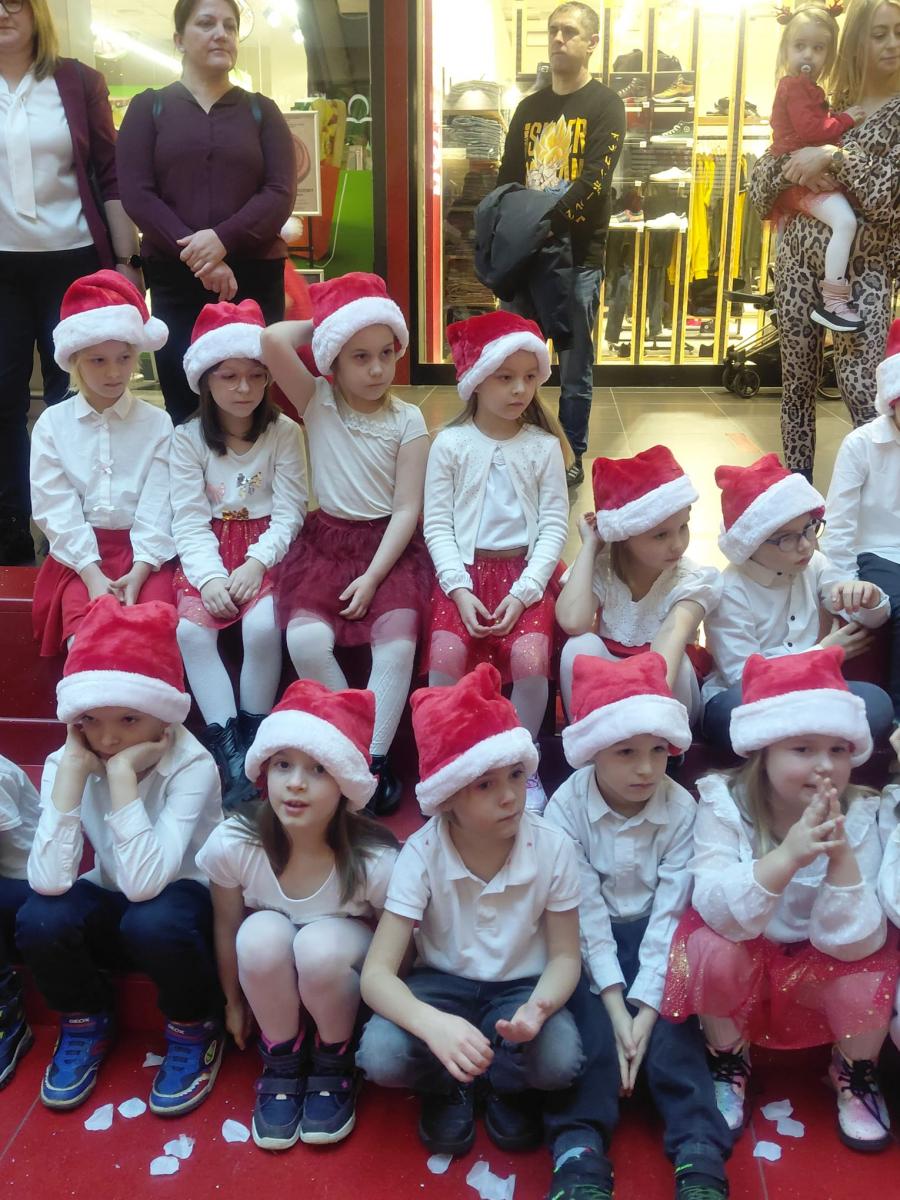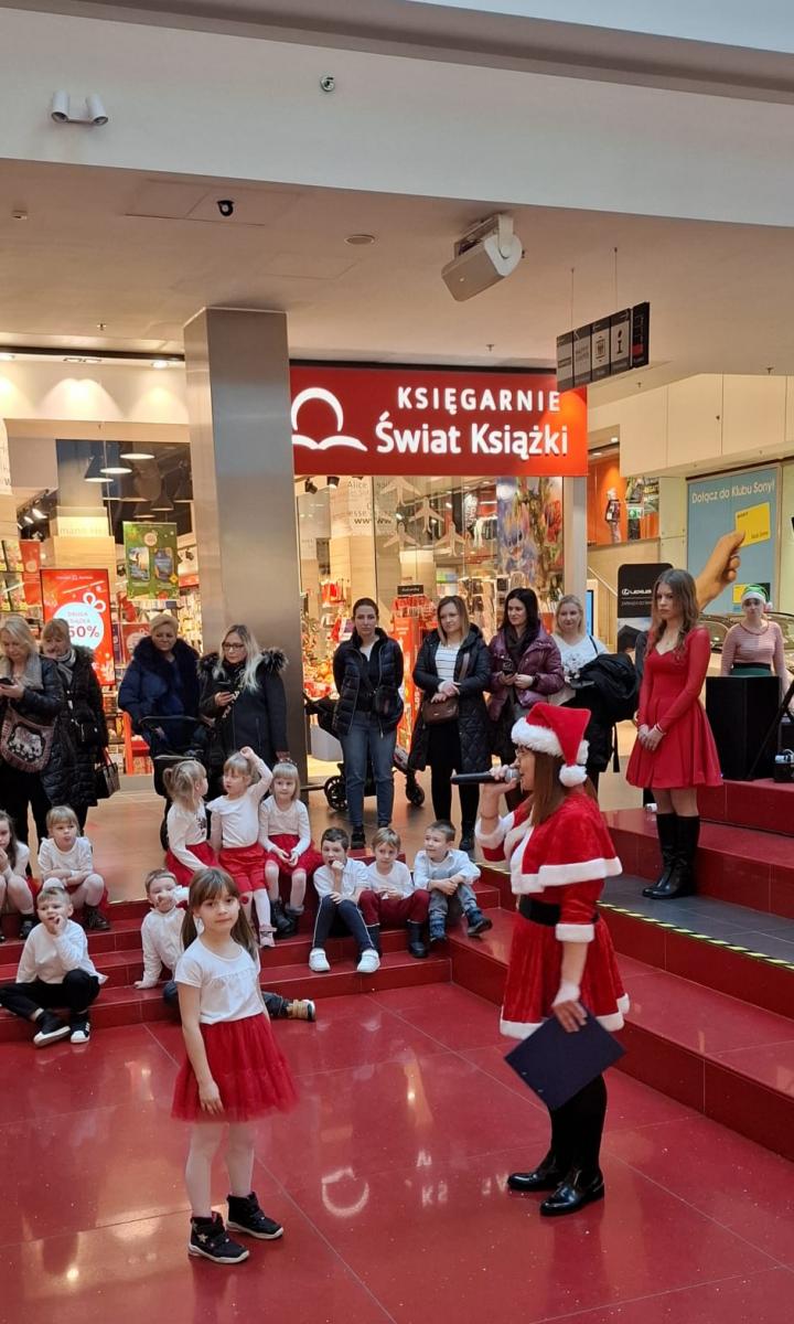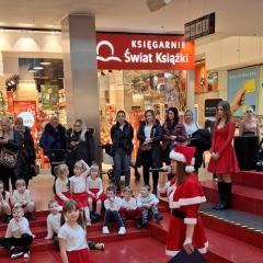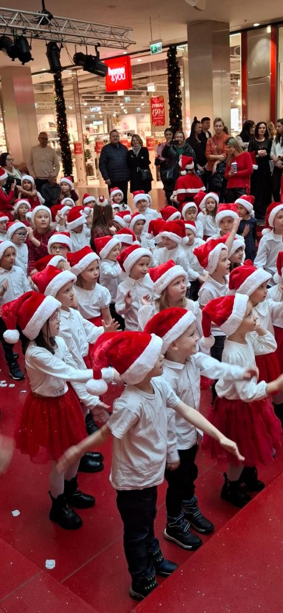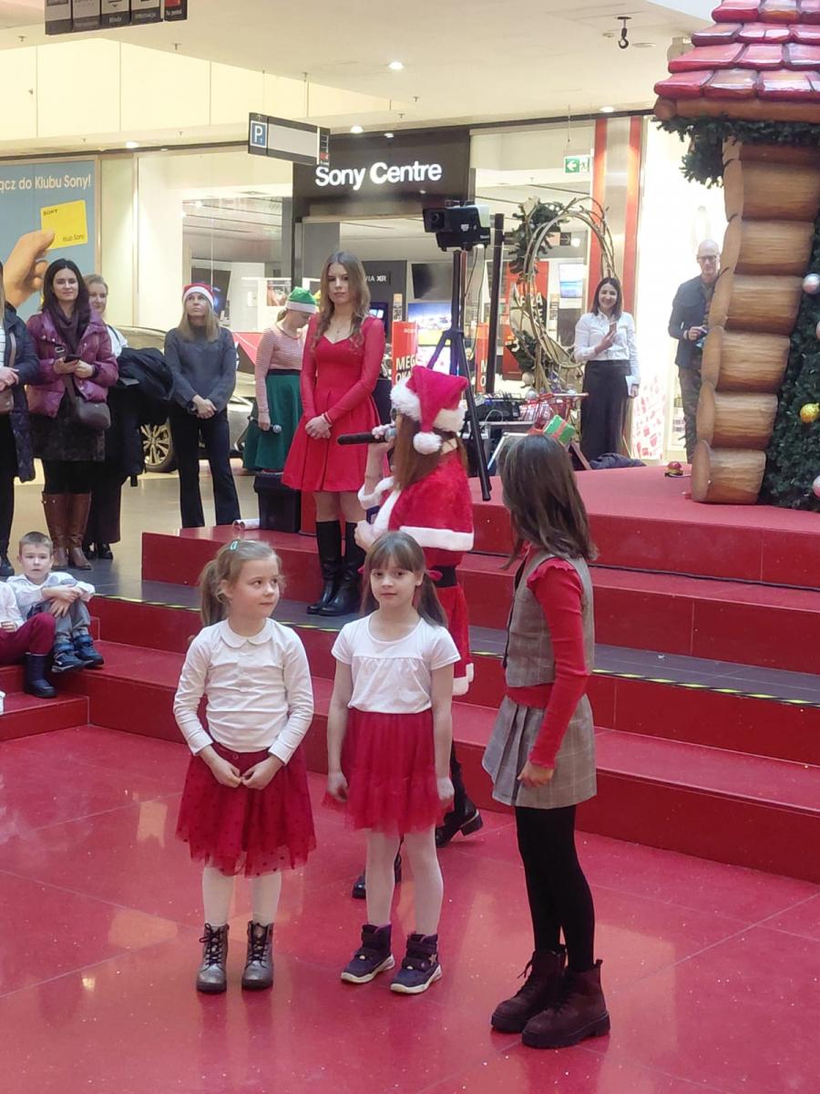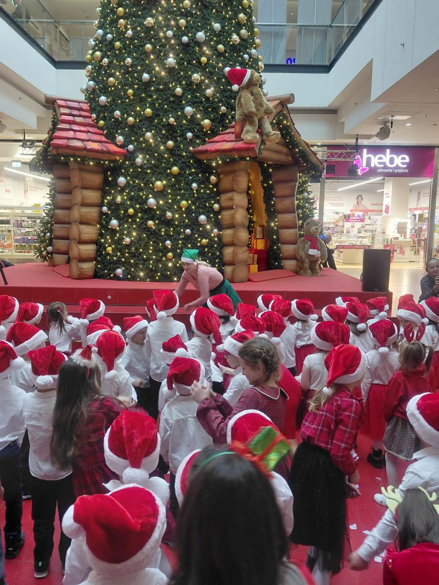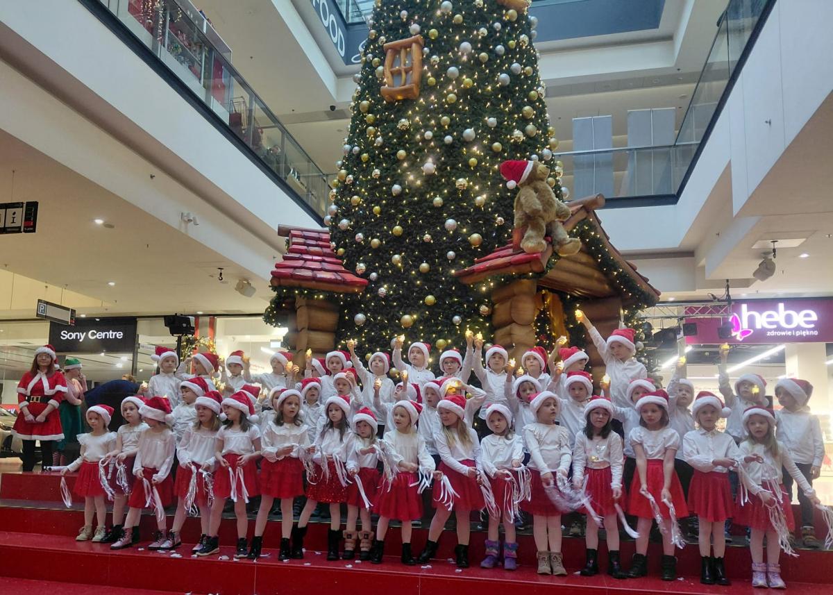 Dnia 3 grudnia dzieci z oddziału IV i V uczestniczyły w uroczystym Mikołajowym odpalaniu choinki w Galerii Echo Kielce. W wydarzeniu wzięły udział również dzieci z Przedszkola Samorządowego nr 16 w Kielcach oraz chór dziecięcy "Mała Fermata". Nasze starszaki zaśpiewały dwie piosenki: "Taniec dla Mikołaja" i "Magiczny piękny czas". W świątecznym nastroju, przy wesołych zabawach upłynął nam miło czas. Na zakończenie, po odpaleniu światełek na choince, dzieci otrzymały oczywiście prezenty od Świętego Mikołaja. Dziękujemy Pani Izabeli T. za możliwość uczestniczenia w tym wyjątkowym, niecodziennym wydarzeniu.