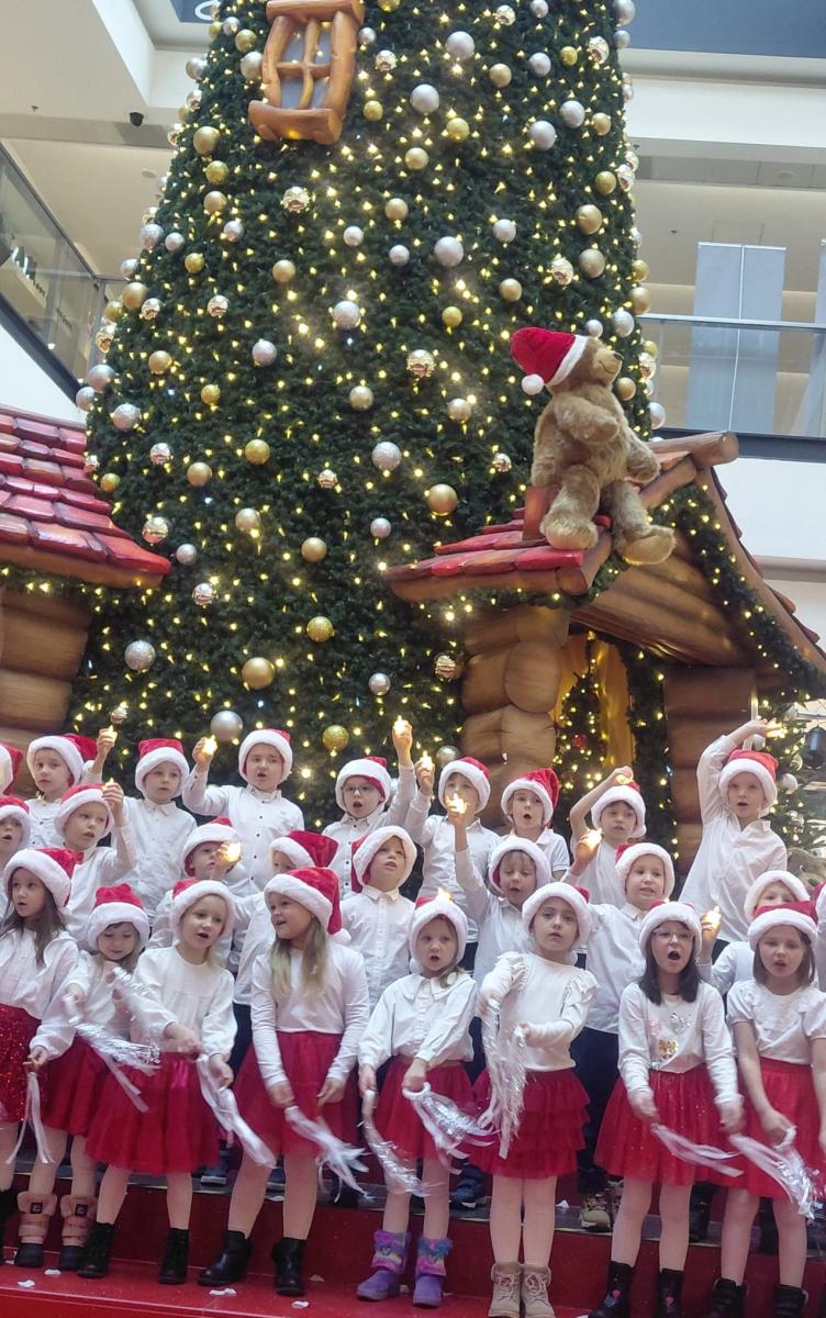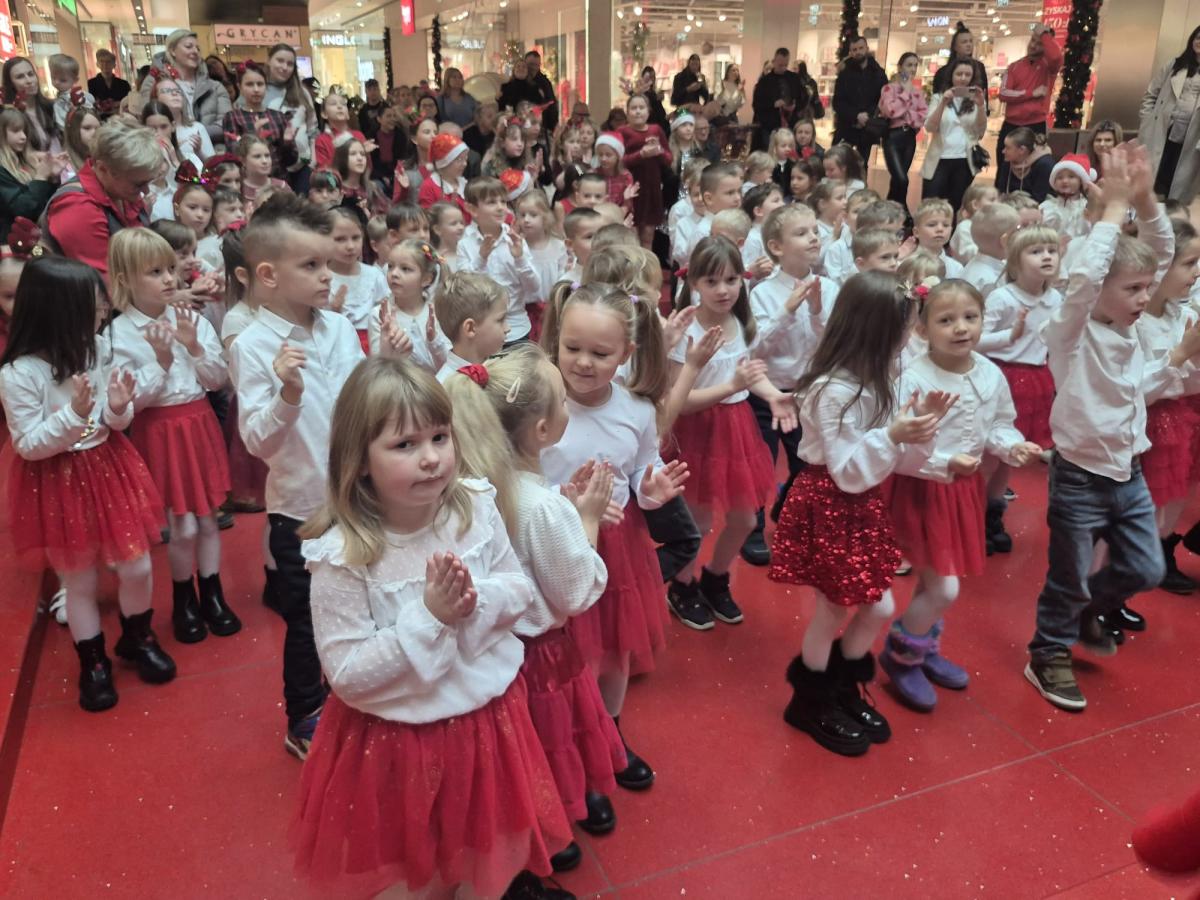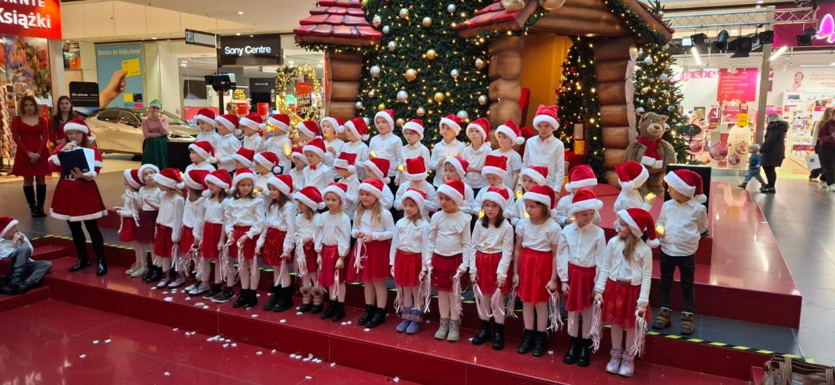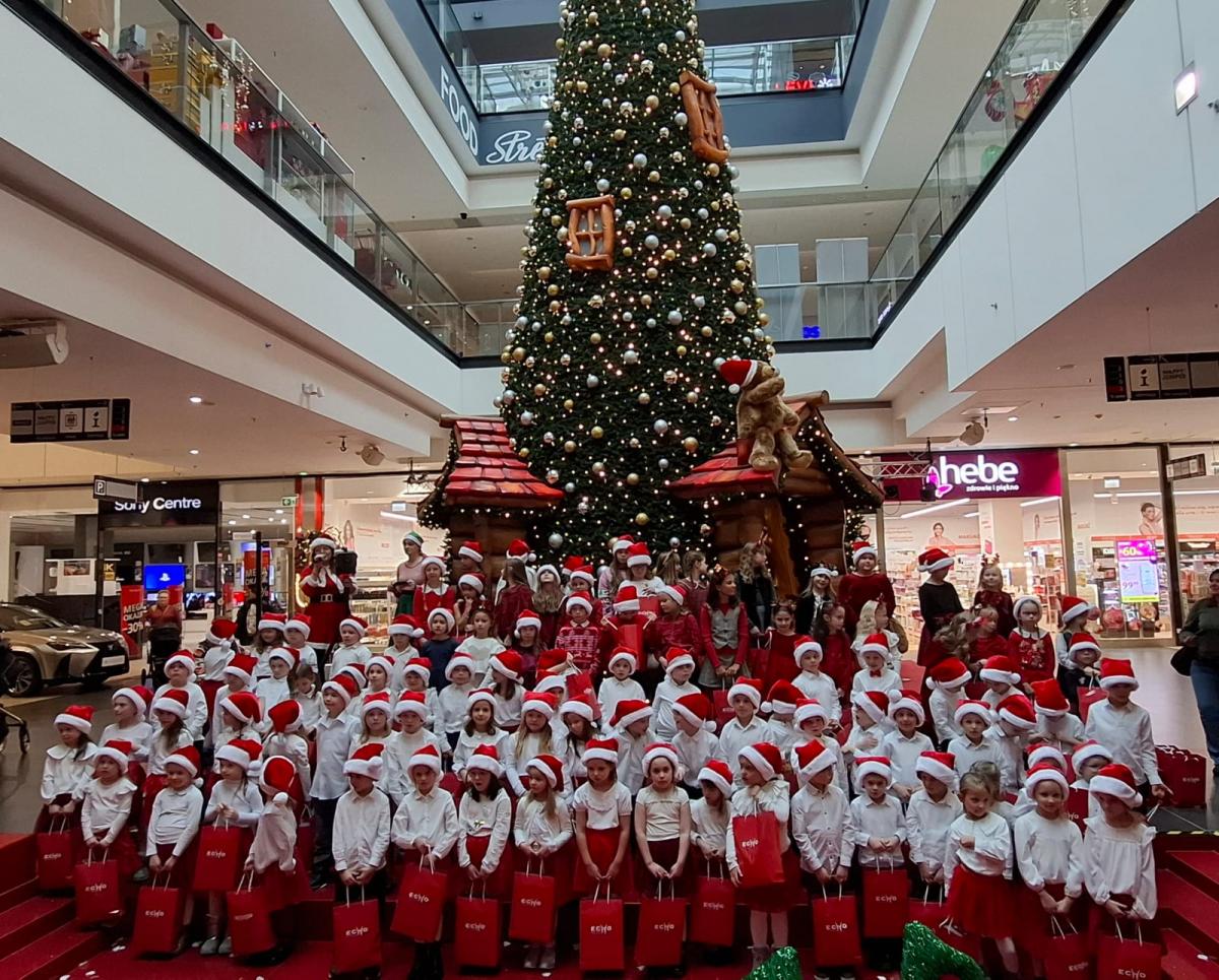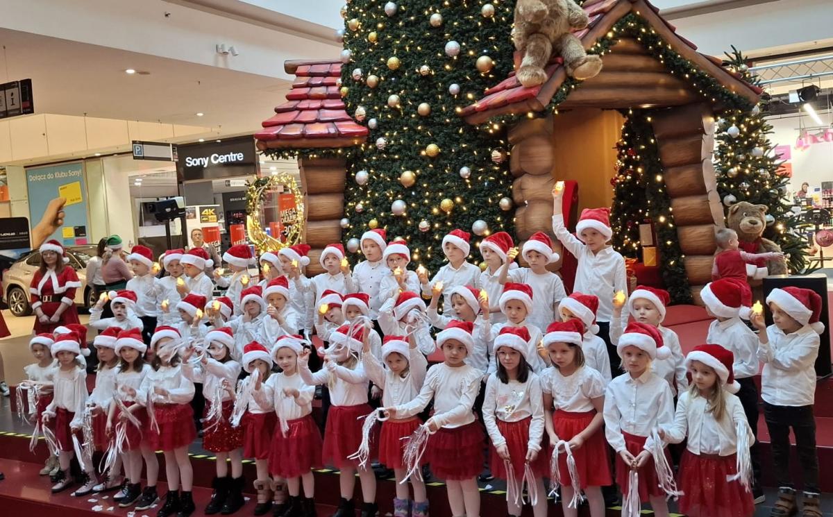 Dnia 3 grudnia dzieci z oddziału IV i V uczestniczyły w uroczystym Mikołajowym odpalaniu choinki w Galerii Echo Kielce. W wydarzeniu wzięły udział również dzieci z Przedszkola Samorządowego nr 16 w Kielcach oraz chór dziecięcy "Mała Fermata". Nasze starszaki zaśpiewały dwie piosenki: "Taniec dla Mikołaja" i "Magiczny piękny czas". W świątecznym nastroju, przy wesołych zabawach upłynął nam miło czas. Na zakończenie, po odpaleniu światełek na choince, dzieci otrzymały oczywiście prezenty od Świętego Mikołaja. Dziękujemy Pani Izabeli T. za możliwość uczestniczenia w tym wyjątkowym, niecodziennym wydarzeniu.