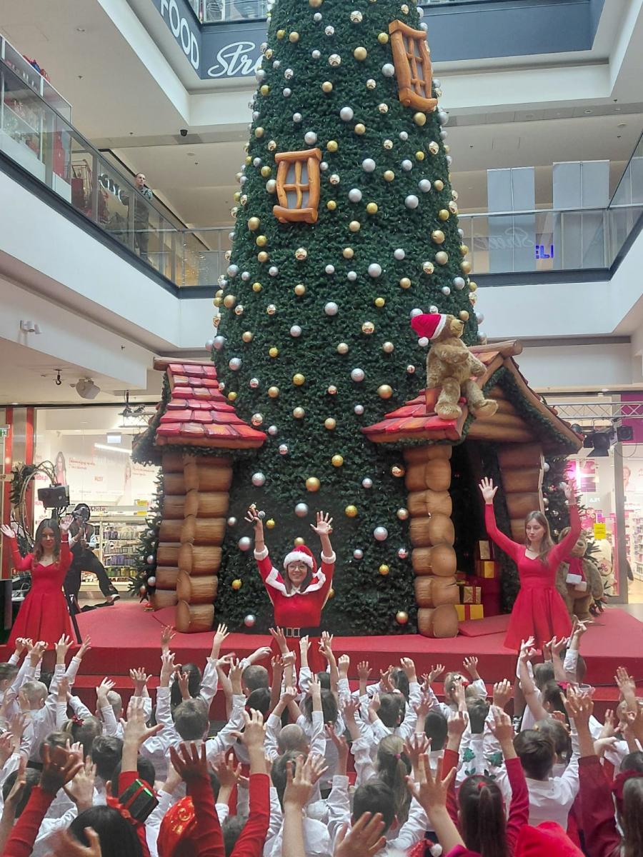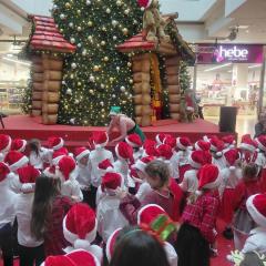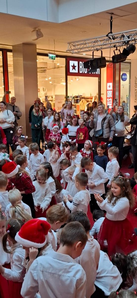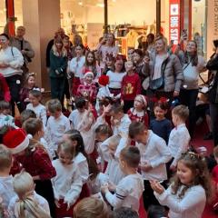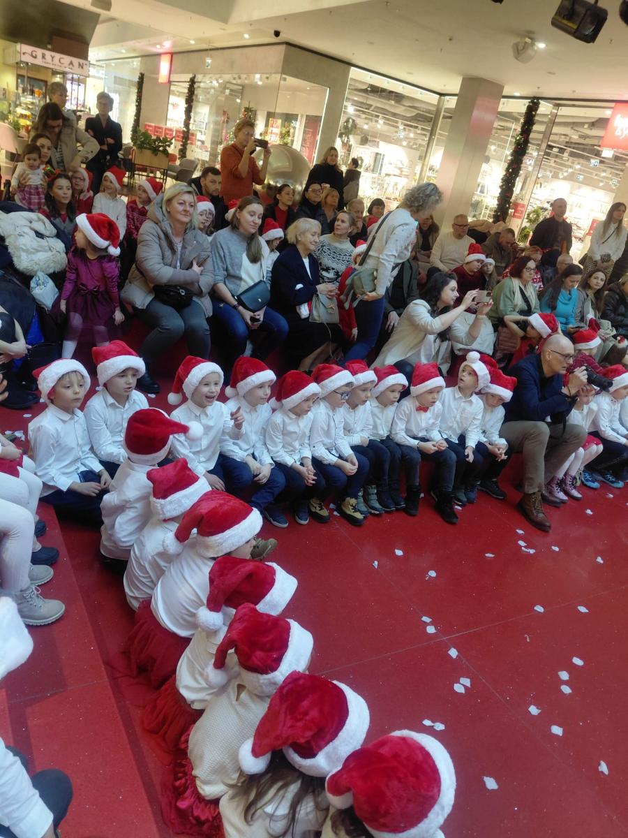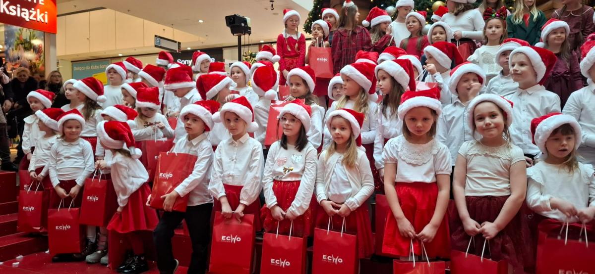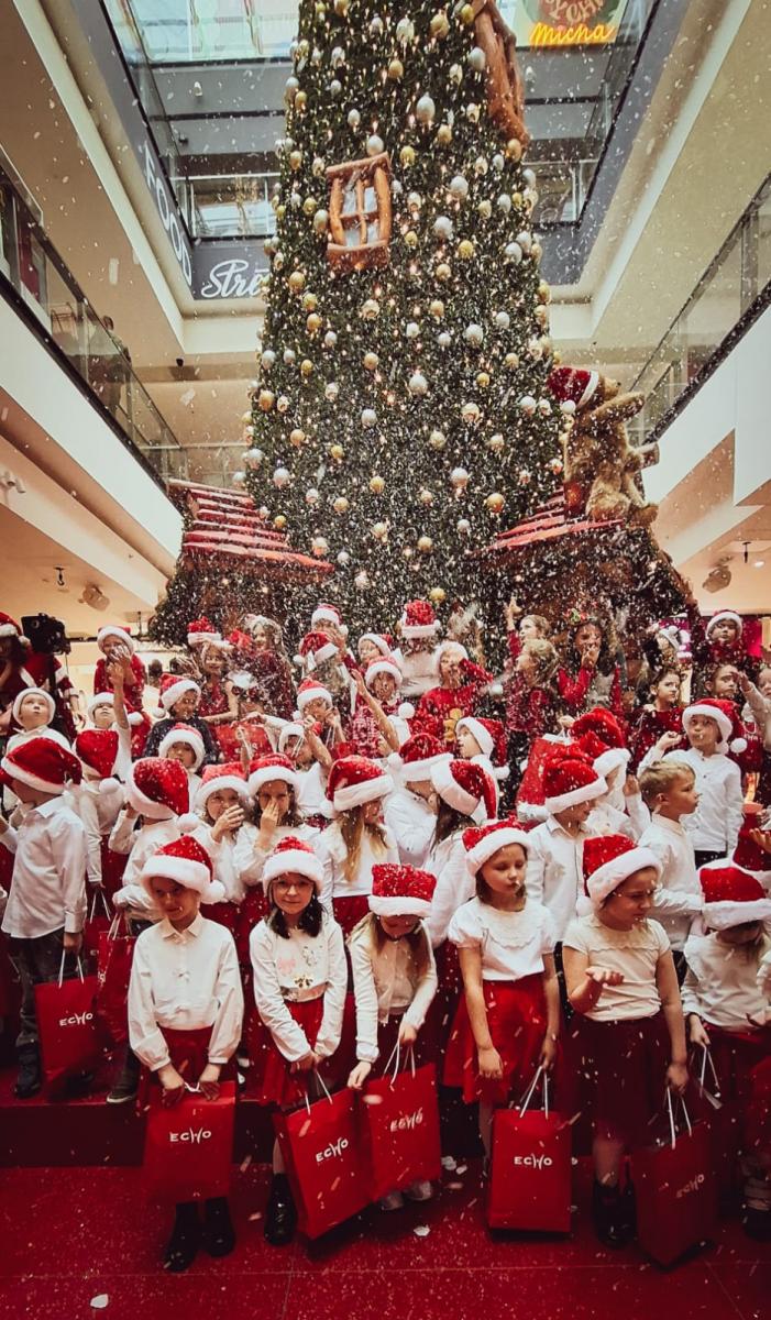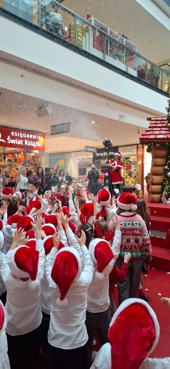 Dnia 3 grudnia dzieci z oddziału IV i V uczestniczyły w uroczystym Mikołajowym odpalaniu choinki w Galerii Echo Kielce. W wydarzeniu wzięły udział również dzieci z Przedszkola Samorządowego nr 16 w Kielcach oraz chór dziecięcy "Mała Fermata". Nasze starszaki zaśpiewały dwie piosenki: "Taniec dla Mikołaja" i "Magiczny piękny czas". W świątecznym nastroju, przy wesołych zabawach upłynął nam miło czas. Na zakończenie, po odpaleniu światełek na choince, dzieci otrzymały oczywiście prezenty od Świętego Mikołaja. Dziękujemy Pani Izabeli T. za możliwość uczestniczenia w tym wyjątkowym, niecodziennym wydarzeniu.