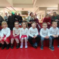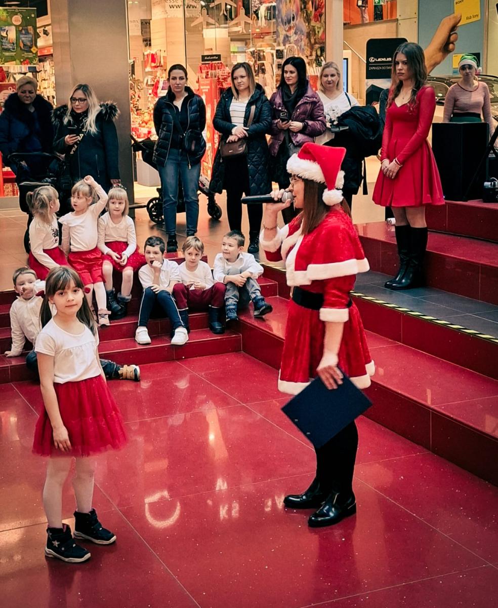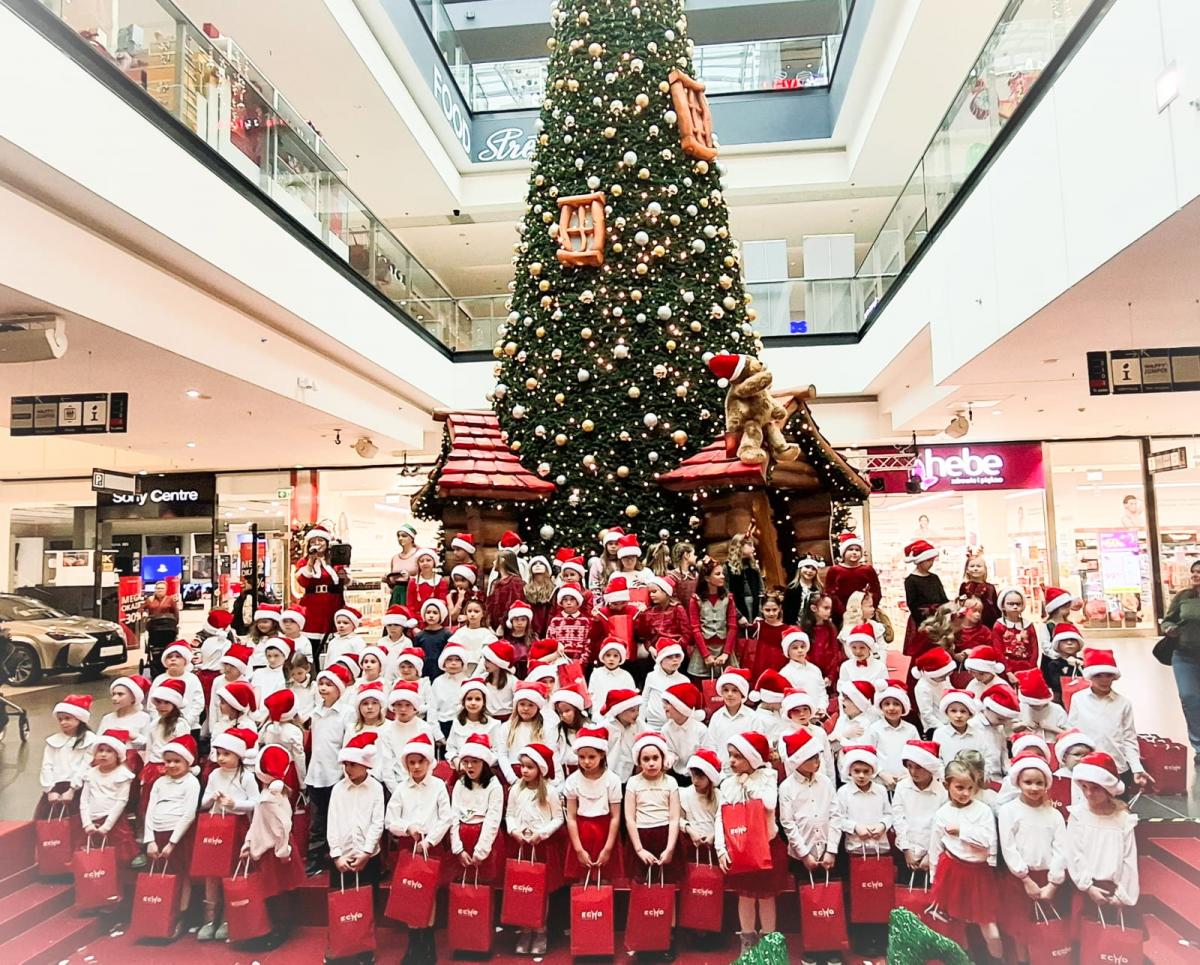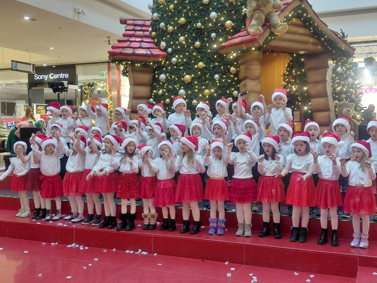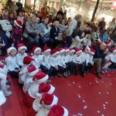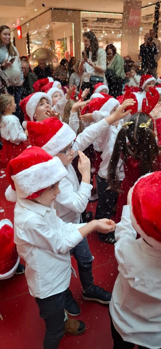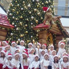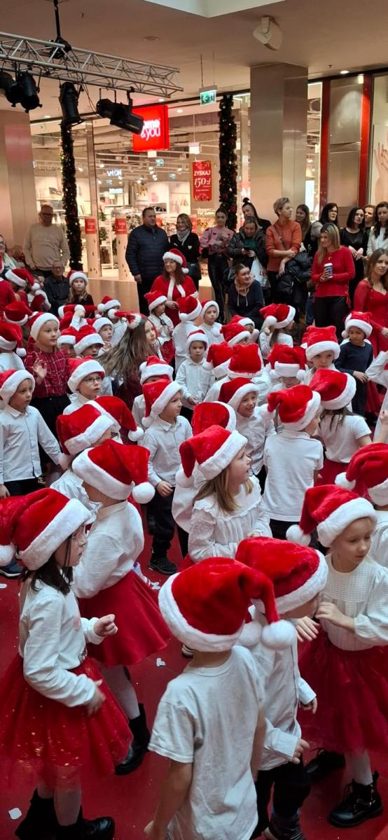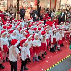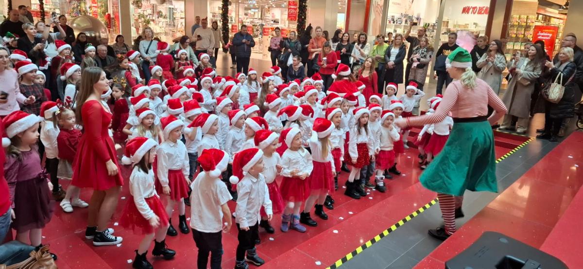 Dnia 3 grudnia dzieci z oddziału IV i V uczestniczyły w uroczystym Mikołajowym odpalaniu choinki w Galerii Echo Kielce. W wydarzeniu wzięły udział również dzieci z Przedszkola Samorządowego nr 16 w Kielcach oraz chór dziecięcy "Mała Fermata". Nasze starszaki zaśpiewały dwie piosenki: "Taniec dla Mikołaja" i "Magiczny piękny czas". W świątecznym nastroju, przy wesołych zabawach upłynął nam miło czas. Na zakończenie, po odpaleniu światełek na choince, dzieci otrzymały oczywiście prezenty od Świętego Mikołaja. Dziękujemy Pani Izabeli T. za możliwość uczestniczenia w tym wyjątkowym, niecodziennym wydarzeniu.