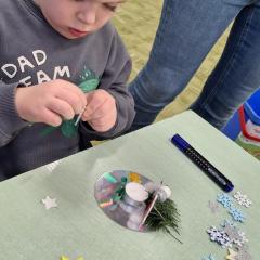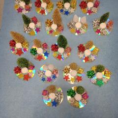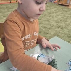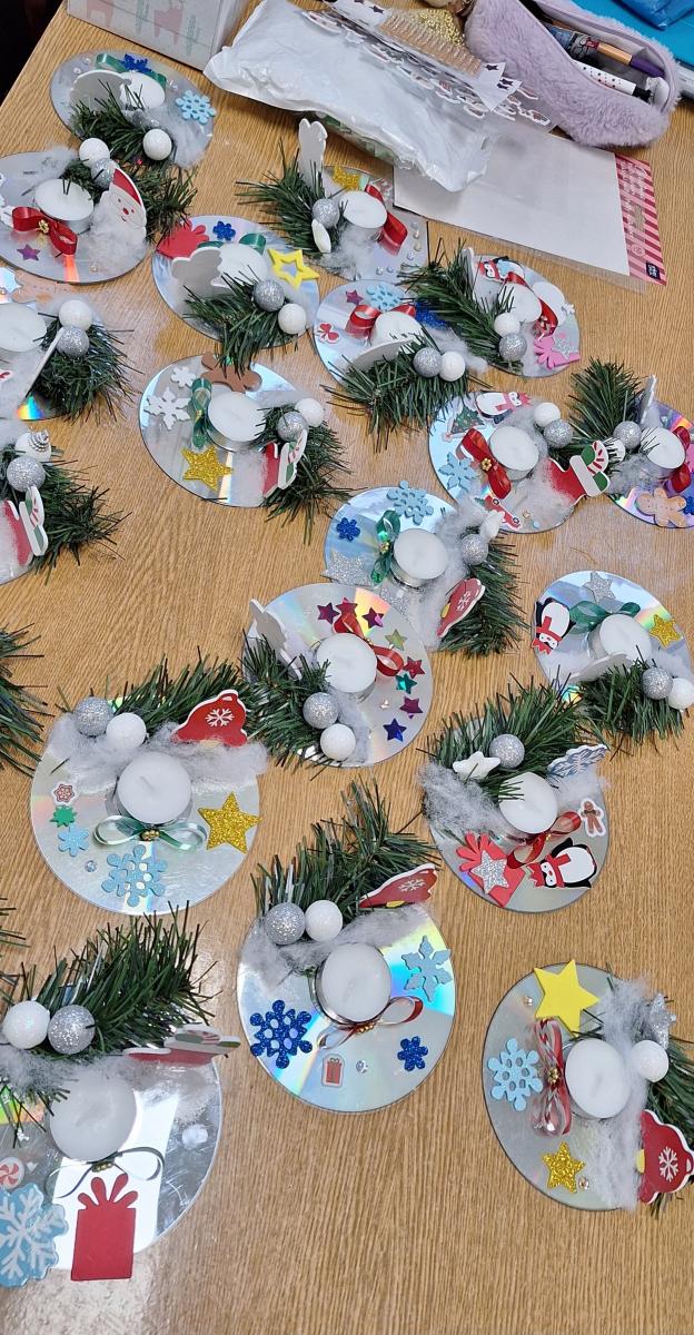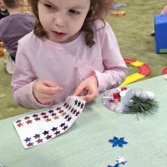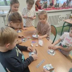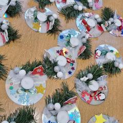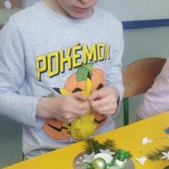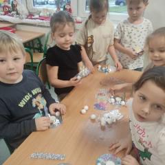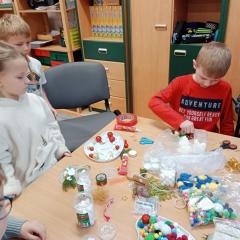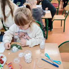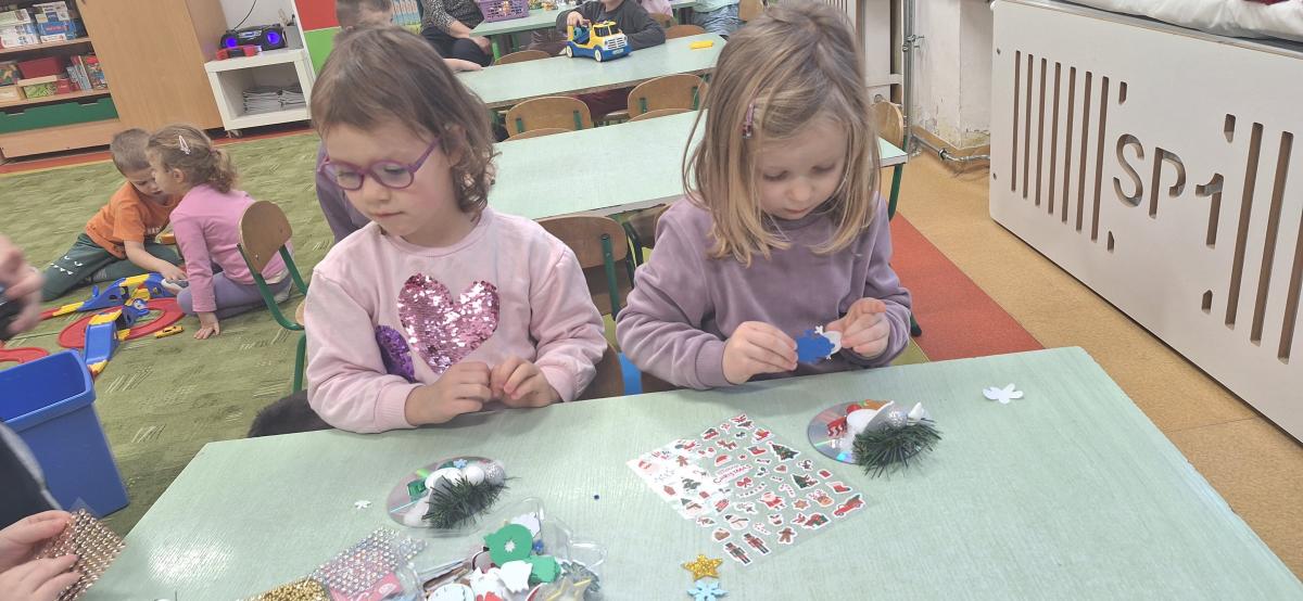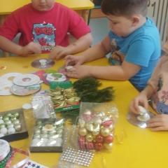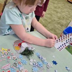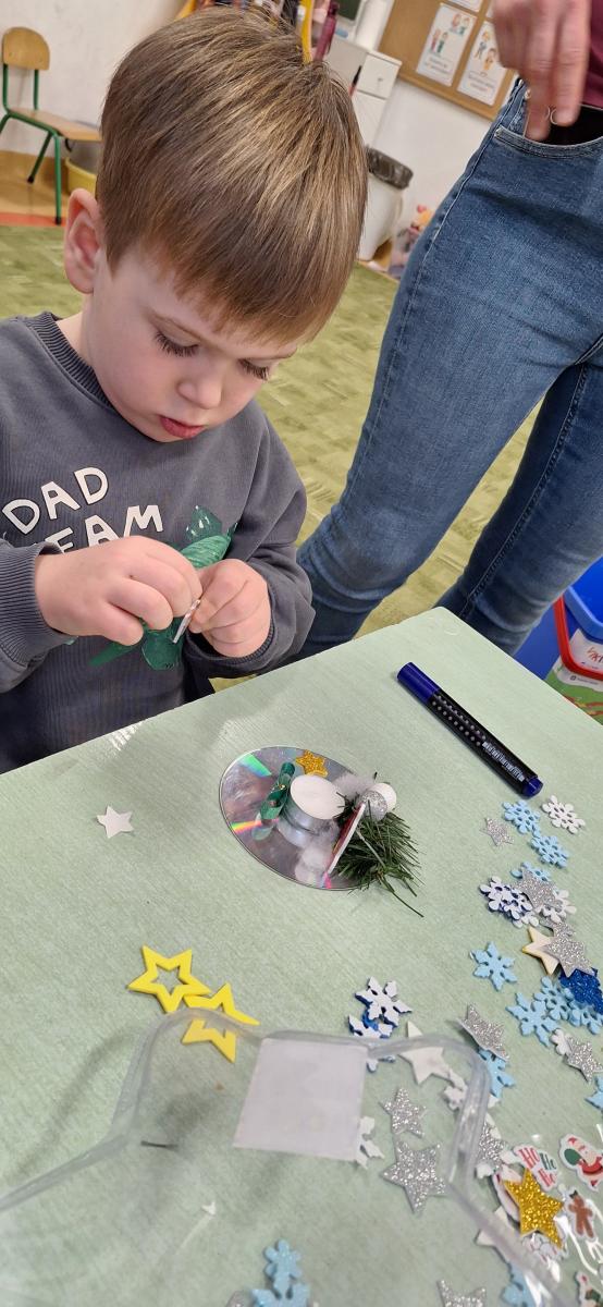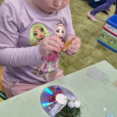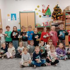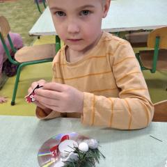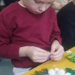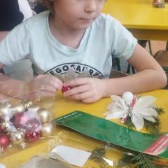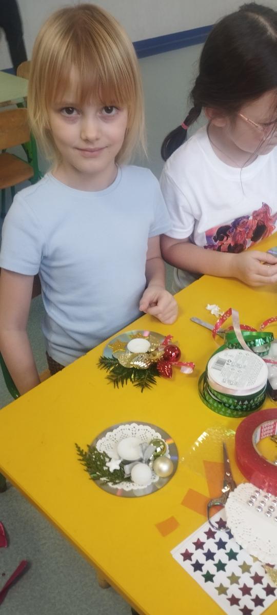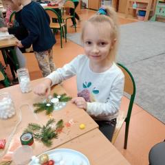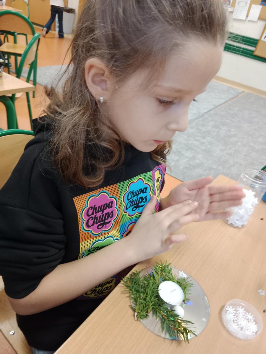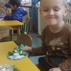 Święta Bożego Narodzenia to doskonała okazja, aby zaangażować dzieci do twórczego działania i wprowadzić je w magiczną atmosferę przygotowań do świąt. W dniu 09.12.2025 r., w ramach innowacji pedagogicznej „Świat małego artysty”, przedszkolaki wykonały świąteczny stroik, zaopatrzony w kolorowe wstążki, gałązki jodłowe i ozdoby. To była nie tylko okazja do rozwijania zdolności manualnych, ale także do wyrażania swojej kreatywności i indywidualności poprzez układanie elementów ozdobnych. Dzieci z zaangażowaniem i entuzjazmem dobierały kolorystykę, decydowały o rozmieszczeniu ozdób, tworząc małe arcydzieła świątecznej sztuki. Efekty pracy były wspaniałe, stroiki wypełnione były świątecznym blaskiem i magią.