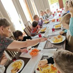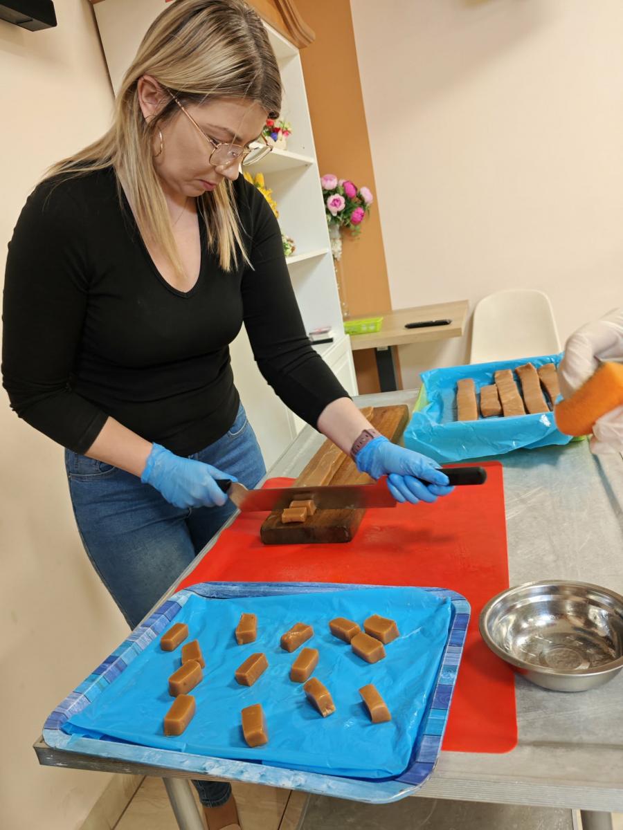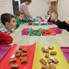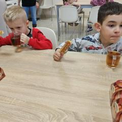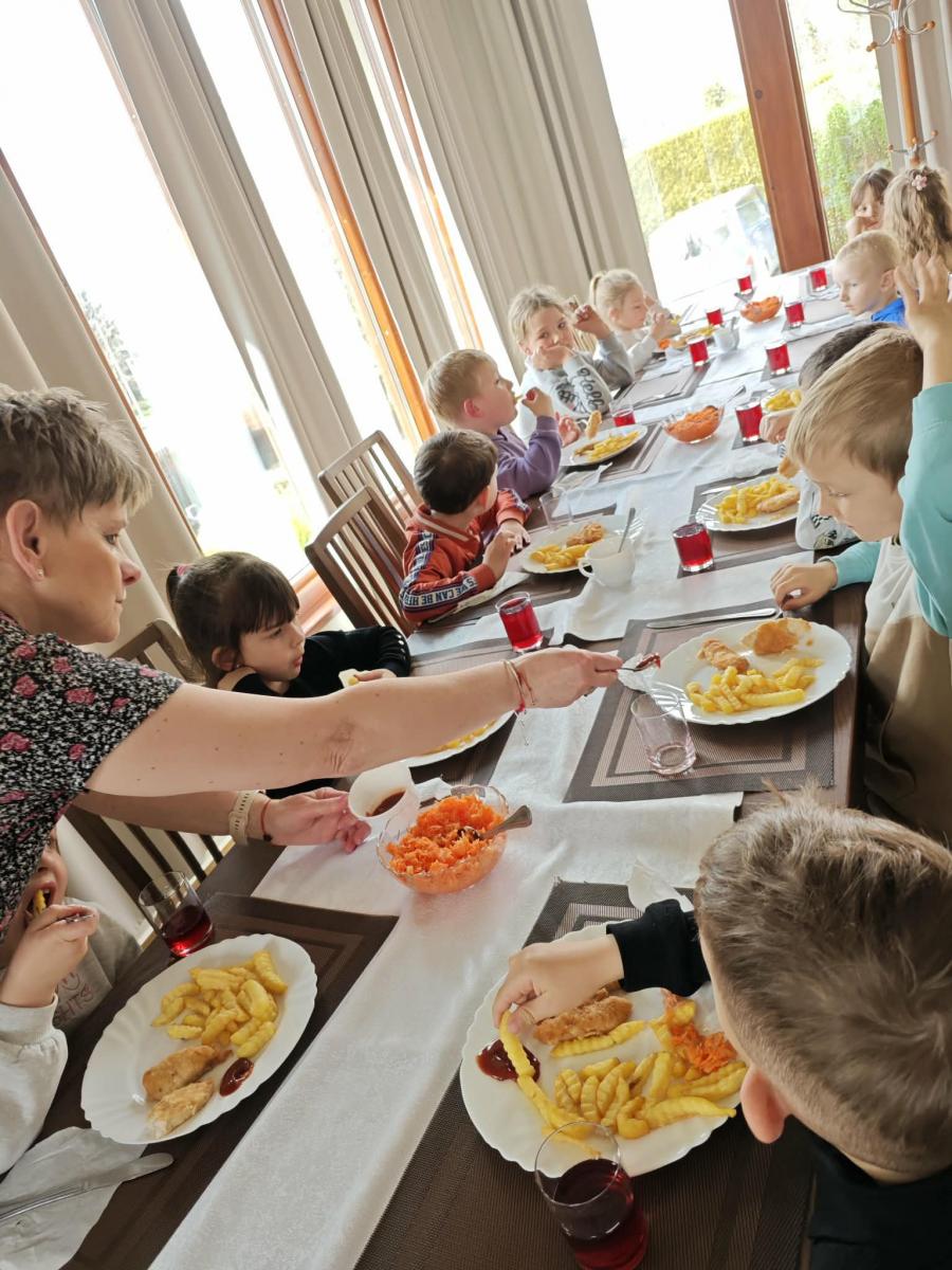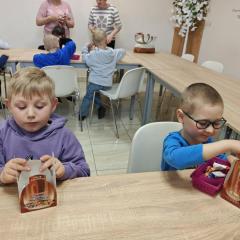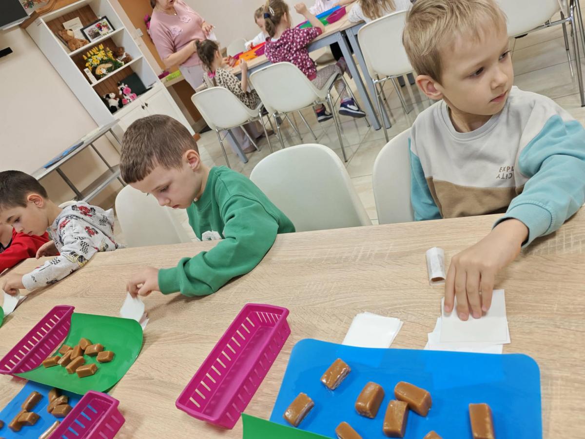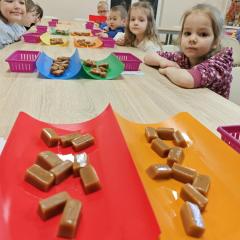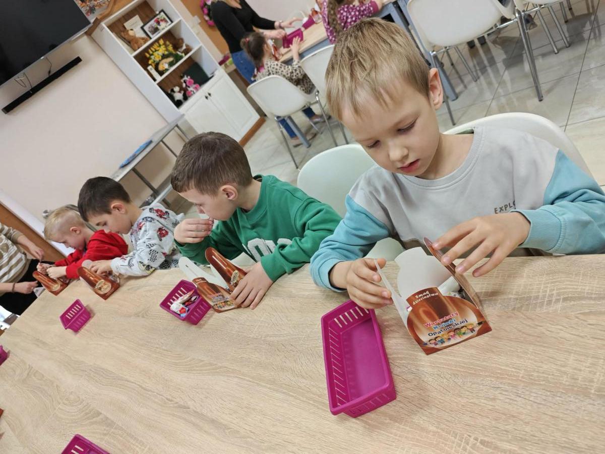 16 kwietnia dzieci z oddziału III wybrały się na wycieczkę do Krówkarenki - Kawiarenki w Opatowie. Celem wycieczki było poznanie etapów powstawania krówek, poznanie nowego zawodu oraz udział w warsztatach. Wycieczkę rozpoczęliśmy od obejrzenia pokazu multimedialnego oraz wysłuchania historii krówki opatowskiej. Dzieci poznały proces produkcji tych cukierków opanowały technikę ich zawijania. Miały również okazję do degustacji. Samodzielnie pozawijane i spakowane w specjalne kuferki słodkości nasze przedszkolaki mogły zabrać do domu. Po warsztatach przyszedł czas na obiad w restauracji "Zamiejska". Znalazła się również chwila na wspólne zabawy na placu zabaw. Pełni wrażeń, nowych doświadczeń, ze słodką niespodzianką wróciliśmy do domu.