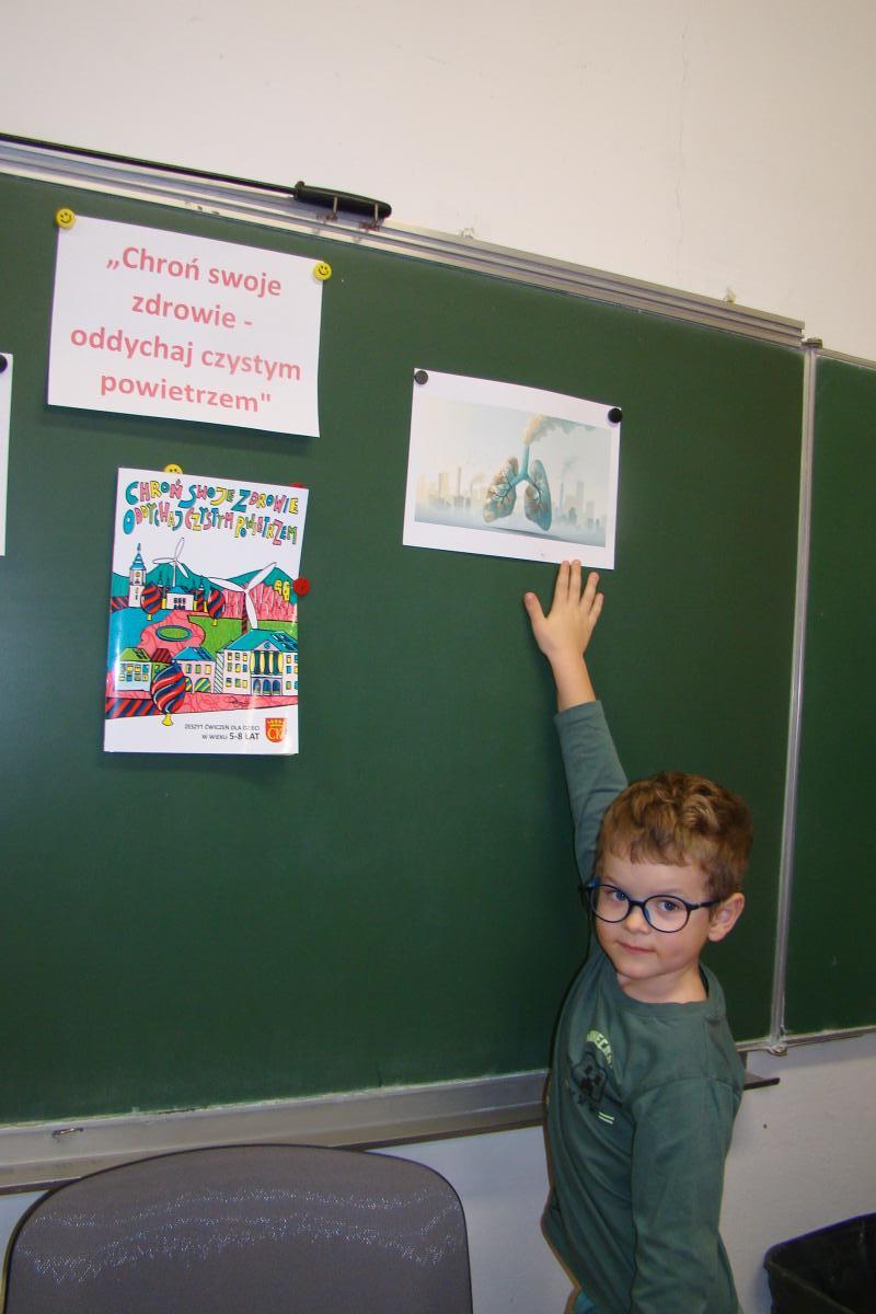 "Chroń swoje zdrowie - oddychaj czystym powietrzem " to tytuł konkursu przygotowanego przez Urząd Miasta Kielce Wydział Klimatu,Środowiska i Gospodarki Komunalnej. W konkursie wzięły udział grupy IV i V. Celem konkursu było pokazanie wpływu zanieczyszczeń na zdrowie człowieka. Przedszkolaki wysłuchały wiersza dotyczącego smogu, obejrzały film edukacyjny i wypełniły zadania w otrzymanych książeczkach.
