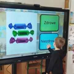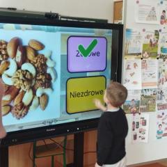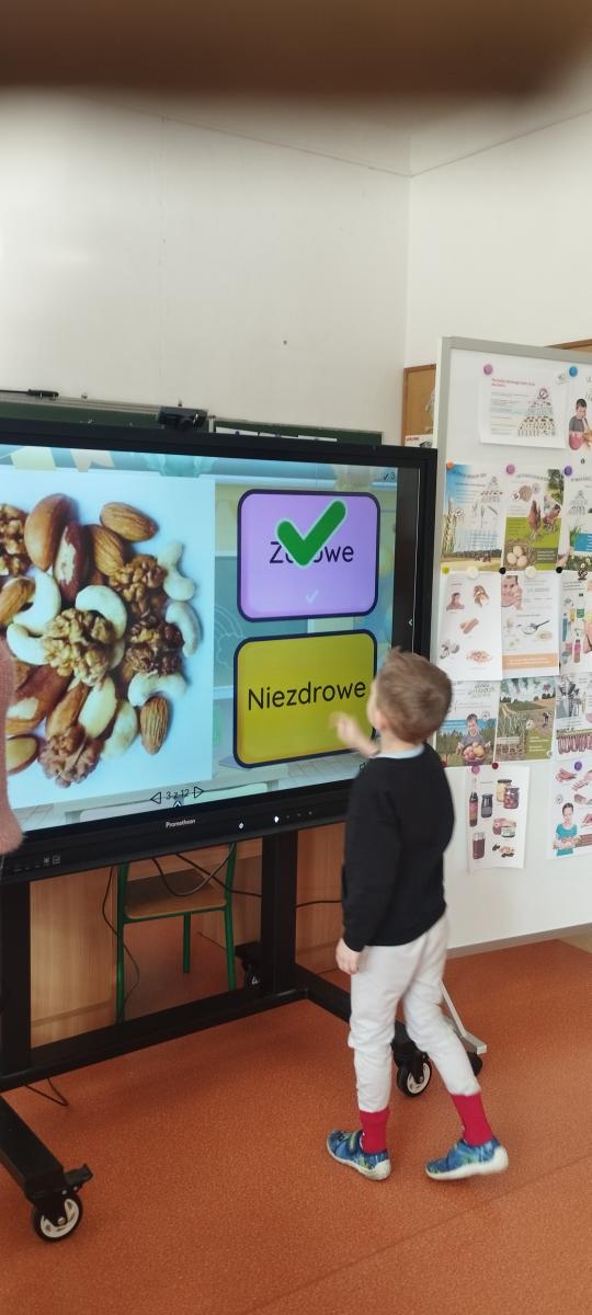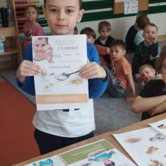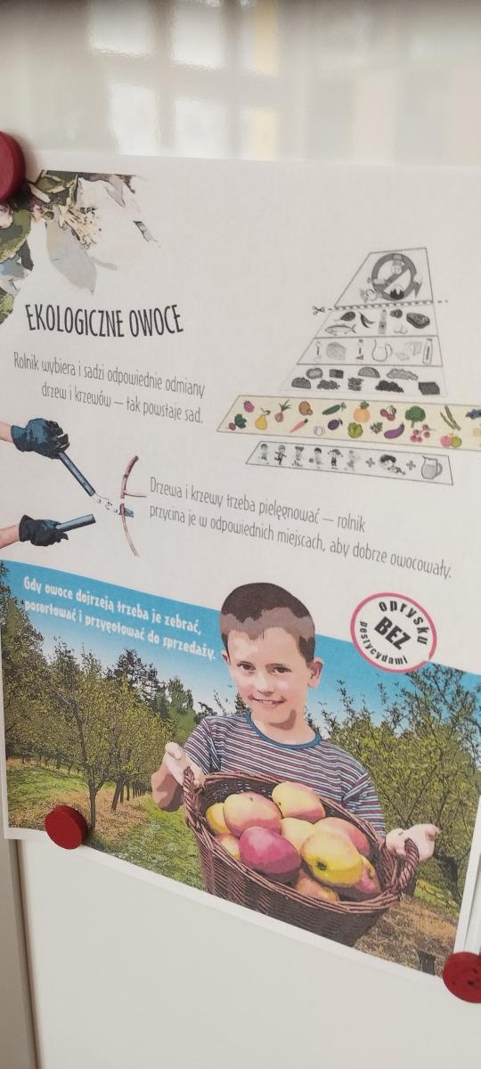 Dnia 19.02.2026 r. dzieci z oddziału IV i V wzięły udział w projekcie edukacyjnym pod patronatem Powiatowej Stacji Sanitarno - Epidemiologicznej w Kielcach "Skąd się biorą produkty ekologiczne". Starszaki dowiedziały się, jak rozpoznać produkty pochodzenia ekologicznego, skąd one pochodzą i co możemy z nich zrobić. Zapoznały się z czynnikami wpływającymi na nasze zdrowie oraz piramidą zdrowego stylu życia. Teraz już wiemy, jak ważne jest dla nas to, co jemy!