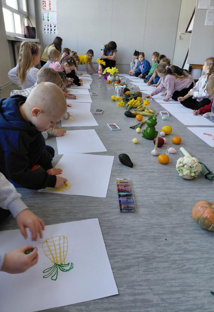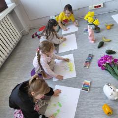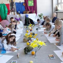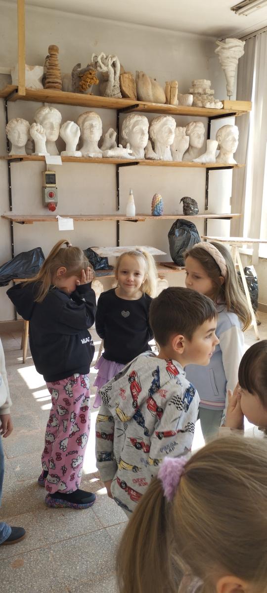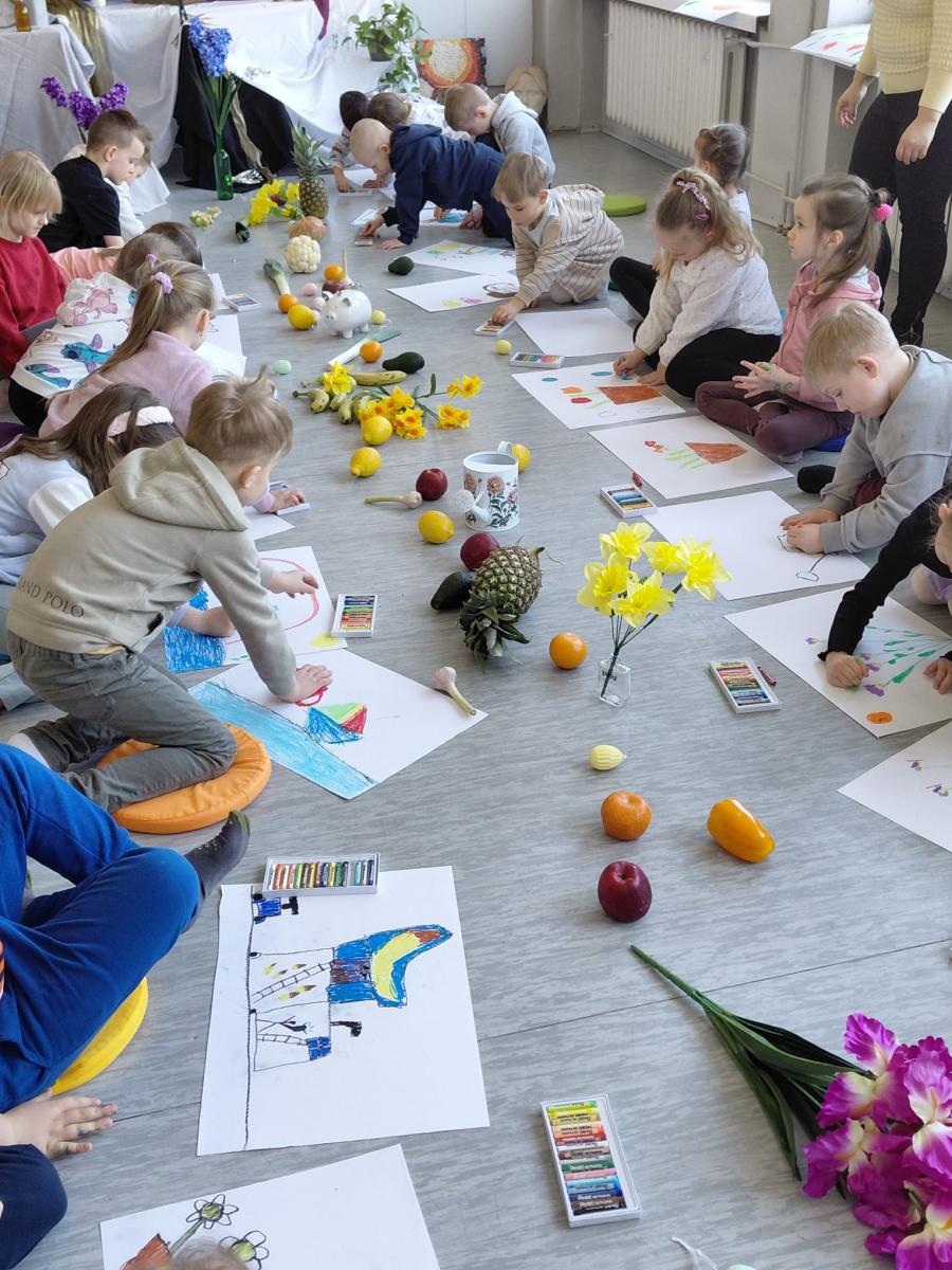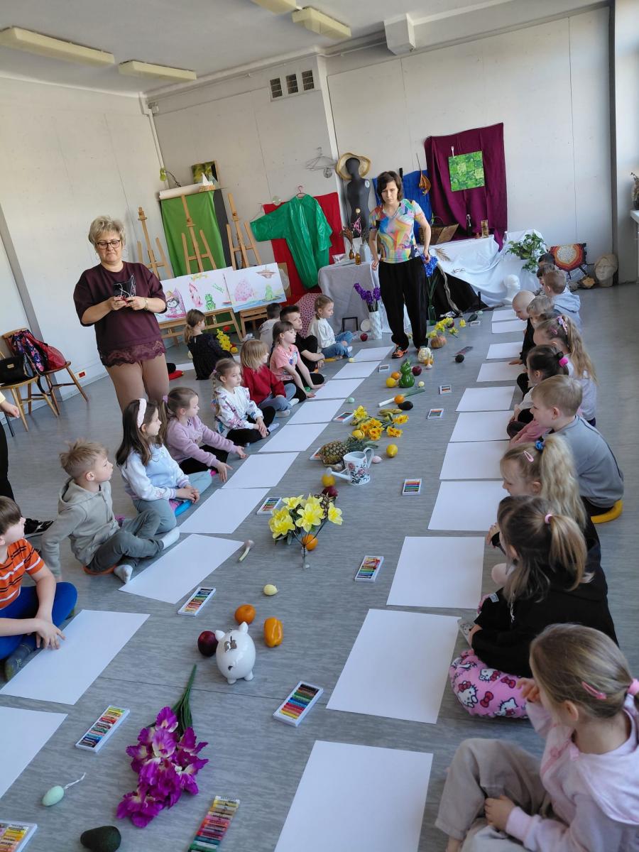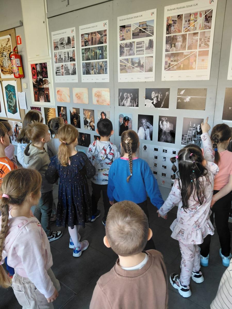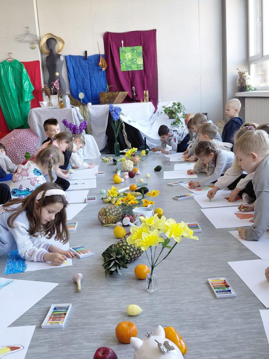 23 marca dzieci uczęszczające na dodatkowe zajęcia plastyczne odwiedziły Instytut Sztuk Wizualnych UJK w Kielcach, gdzie miały okazję poznać świat sztuki „od kuchni”. Podczas wizyty  zwiedziły różne pracownie artystyczne, w których studenci tworzą swoje prace. Z zainteresowaniem oglądały m.in. pracownie malarstwa, rysunku oraz grafiki, rzeźby i fotografii. W trakcie zwiedzania miały również możliwość obejrzenia prac wykonanych przez studentów. Kolorowe obrazy, rysunki i grafiki wzbudziły duże zainteresowanie oraz podziw najmłodszych. Przedszkolaki chętnie wypowiadały się na temat oglądanych dzieł i dzieliły się swoimi wrażeniami. Największe emocje wzbudziła możliwość zobaczenia narzędzi i materiałów wykorzystywanych przez artystów, takich jak farby, sztalugi czy prasy graficzne. Dzieci zadawały wiele pytań i z ciekawością słuchały odpowiedzi. W trakcie wizyty odbyły się również zajęcia praktyczne, podczas których przedszkolaki spróbowały swoich sił w tworzeniu prac plastycznych. Dzieci malowały martwą naturę pastelami olejnymi, rozwijając swoją wyobraźnię i zdolności artystyczne. Powstałe prace były pełne kolorów i dziecięcej ekspresji. Wizyta była dla przedszkolaków ciekawym i inspirującym doświadczeniem, które rozbudziło ich wyobraźnię oraz zachęciło do własnej twórczości plastycznej.