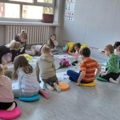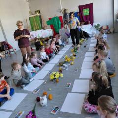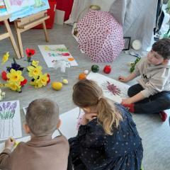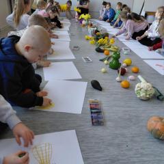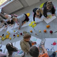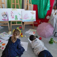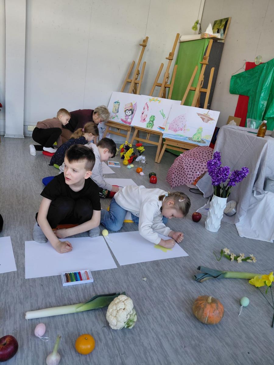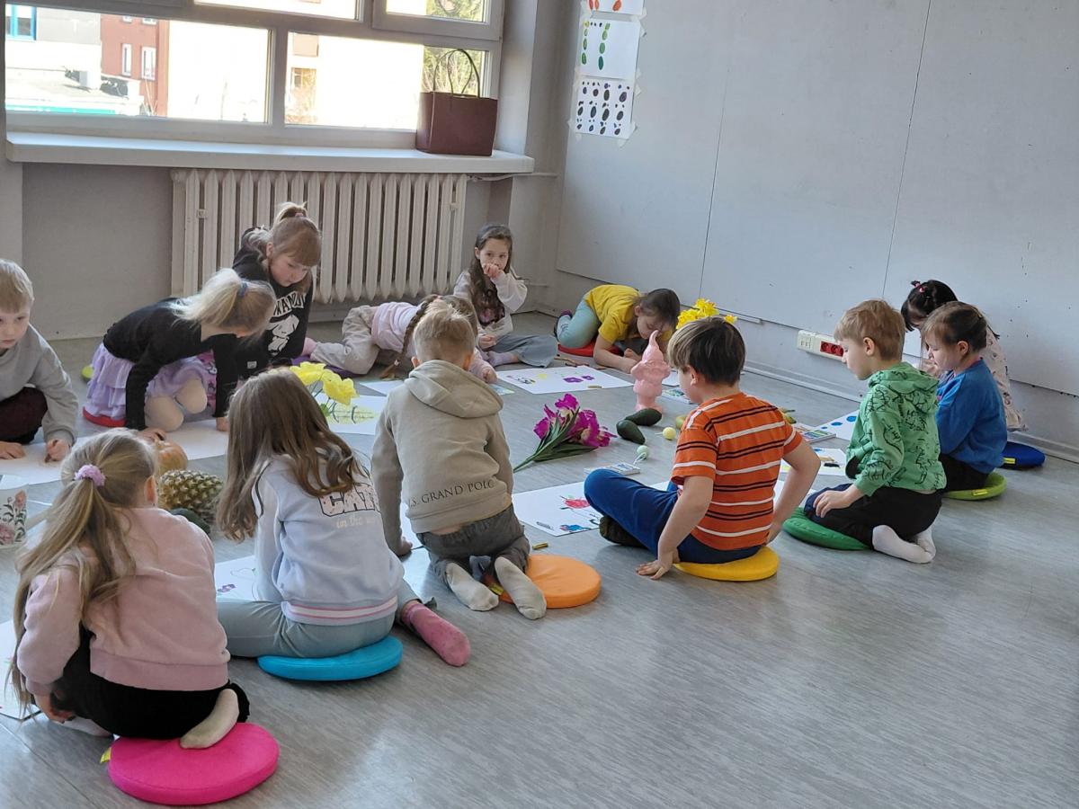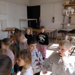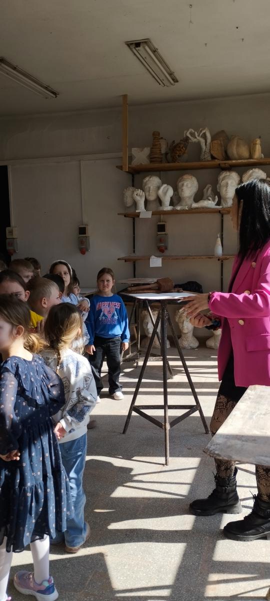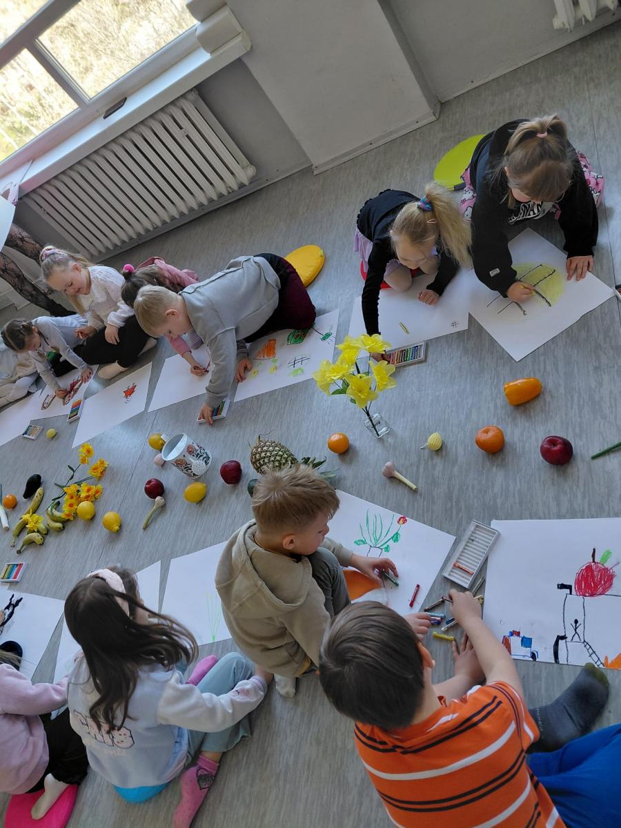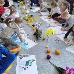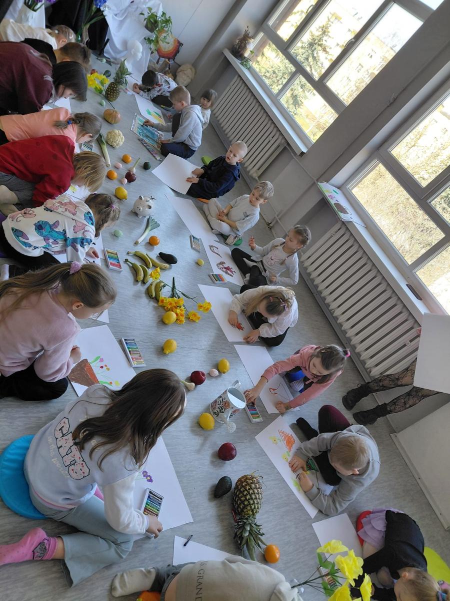 23 marca dzieci uczęszczające na dodatkowe zajęcia plastyczne odwiedziły Instytut Sztuk Wizualnych UJK w Kielcach, gdzie miały okazję poznać świat sztuki „od kuchni”. Podczas wizyty  zwiedziły różne pracownie artystyczne, w których studenci tworzą swoje prace. Z zainteresowaniem oglądały m.in. pracownie malarstwa, rysunku oraz grafiki, rzeźby i fotografii. W trakcie zwiedzania miały również możliwość obejrzenia prac wykonanych przez studentów. Kolorowe obrazy, rysunki i grafiki wzbudziły duże zainteresowanie oraz podziw najmłodszych. Przedszkolaki chętnie wypowiadały się na temat oglądanych dzieł i dzieliły się swoimi wrażeniami. Największe emocje wzbudziła możliwość zobaczenia narzędzi i materiałów wykorzystywanych przez artystów, takich jak farby, sztalugi czy prasy graficzne. Dzieci zadawały wiele pytań i z ciekawością słuchały odpowiedzi. W trakcie wizyty odbyły się również zajęcia praktyczne, podczas których przedszkolaki spróbowały swoich sił w tworzeniu prac plastycznych. Dzieci malowały martwą naturę pastelami olejnymi, rozwijając swoją wyobraźnię i zdolności artystyczne. Powstałe prace były pełne kolorów i dziecięcej ekspresji. Wizyta była dla przedszkolaków ciekawym i inspirującym doświadczeniem, które rozbudziło ich wyobraźnię oraz zachęciło do własnej twórczości plastycznej.