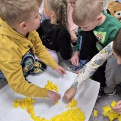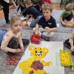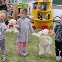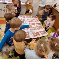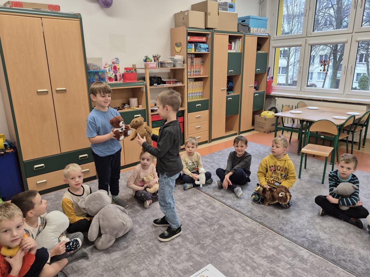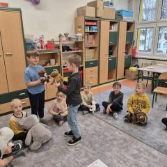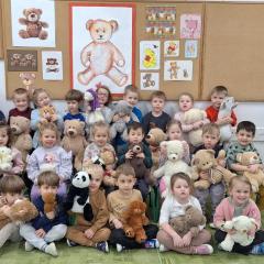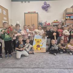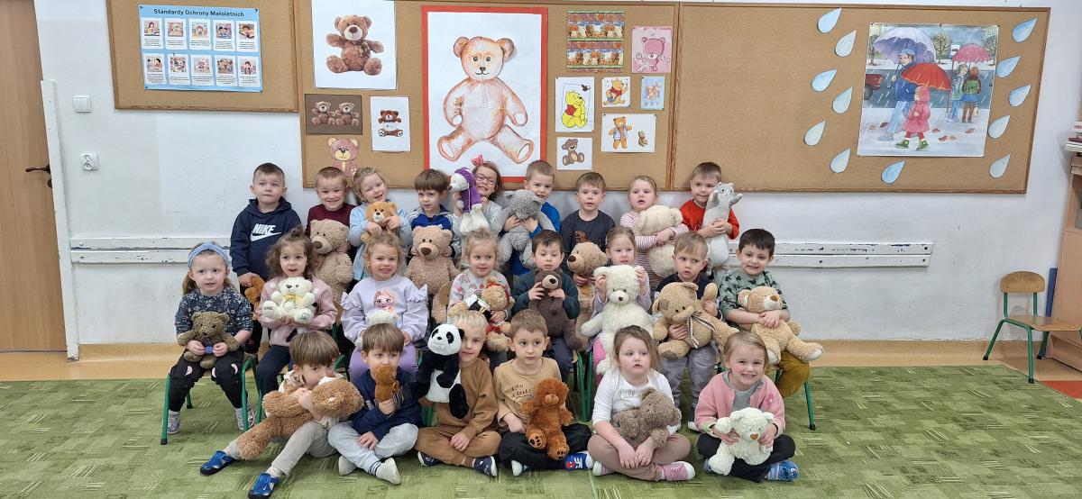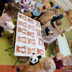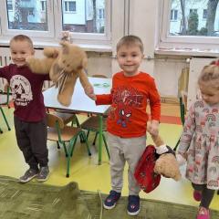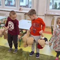25 listopada obchodzimy Światowy Dzień Pluszowego Misia. Jak co roku my też bawiliśmy się z misiami, bo przecież "Miś - przyjaciel dzieci nie od dziś". Tego dnia każde dziecko przyszło do przedszkola ze swoim „milutkim” przyjacielem, by wspólnie z innymi celebrować te pełne radości chwile. Na dzieci i ich misie czekało wiele atrakcji. Poznały historię święta, wspólnie recytowały wiersze i rymowanki o misiach, bawiły się przy misiowych piosenkach, uczestniczyły w zabawach ruchowych i zręcznościowych. Nie zabrakło konkursów, quizów i zgadywanek o słynnych misiach występujących w znanych bajkach. Przedszkolaki wykonały również prace plastyczne z misiem w roli głównej.