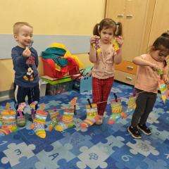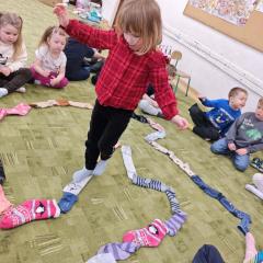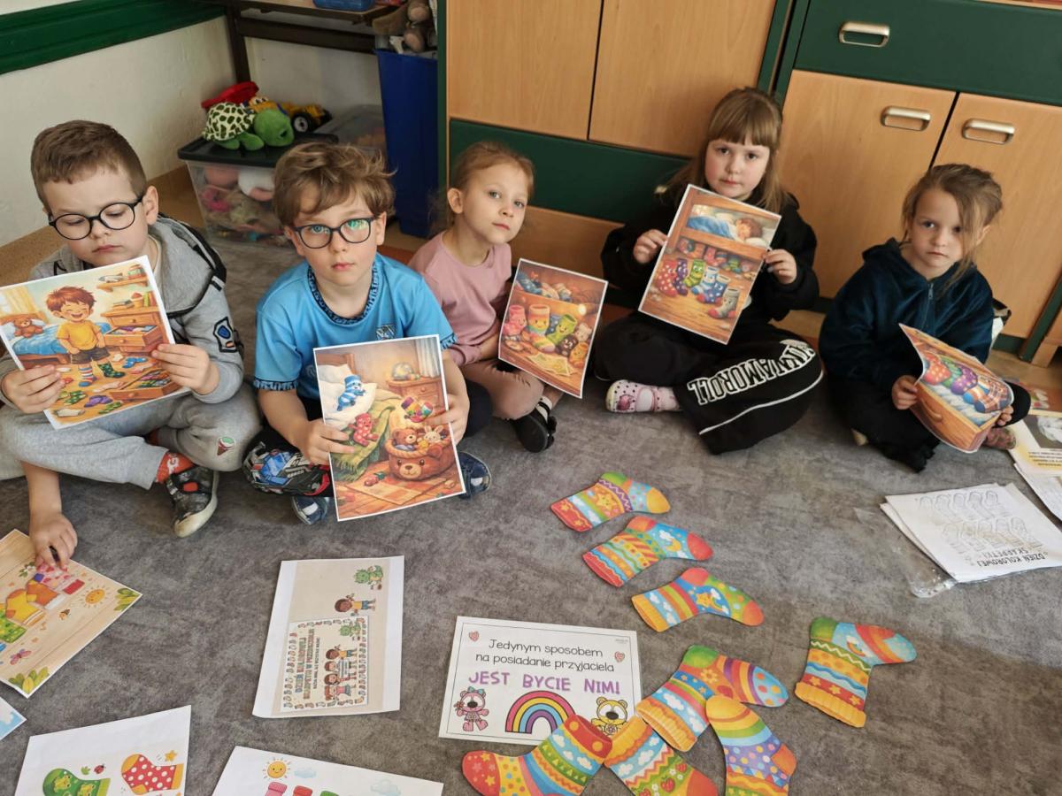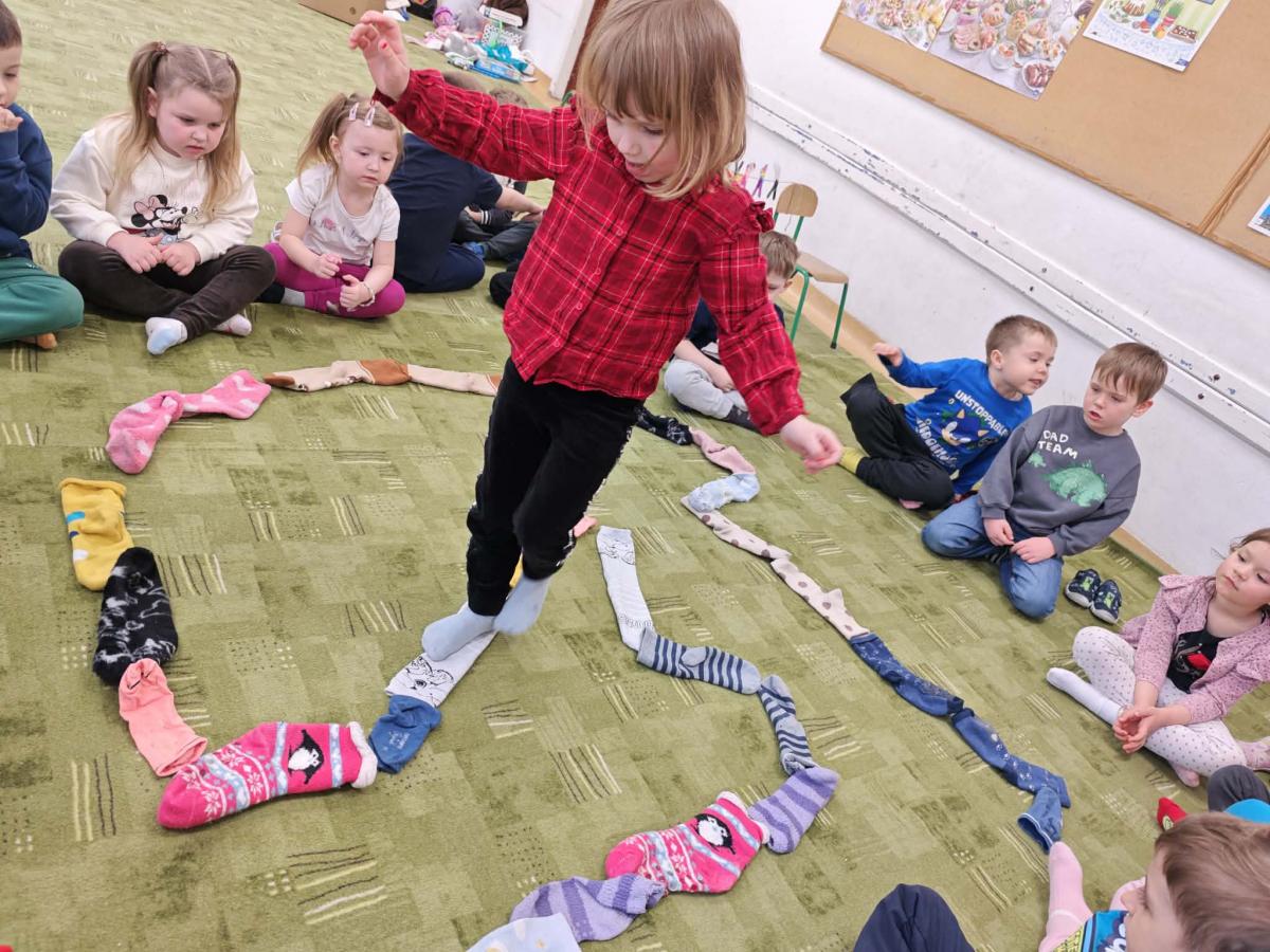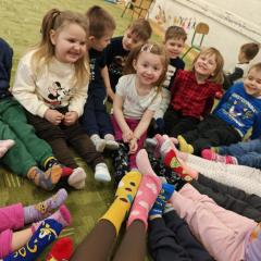 Dzień Kolorowej Skarpetki to wyjątkowe święto, które w naszym przedszkolu stało się okazją do rozmowy o tym, co naprawdę ważne – o empatii, tolerancji i akceptacji drugiego człowieka. Tego dnia dzieci zakładają różnokolorowe, niepasujące do siebie skarpetki, jako symbol różnorodności i otwartości na innych. Poprzez wspólne zabawy, rozmowy i aktywności uczymy najmłodszych, że każdy z nas jest inny, ale właśnie te różnice sprawiają, że świat jest ciekawszy i piękniejszy. Rozwijamy w dzieciach wrażliwość na potrzeby innych oraz umiejętność dostrzegania i szanowania odmienności. To ważna lekcja, która pokazuje, że mimo różnic wszyscy jesteśmy wyjątkowi, wartościowi i zasługujemy na szacunek.