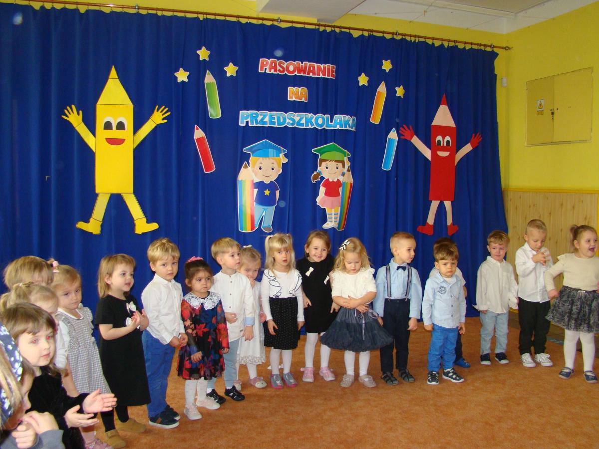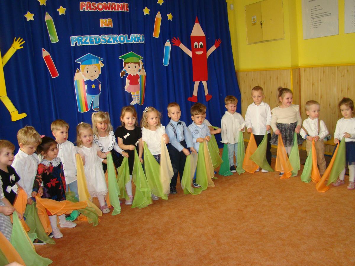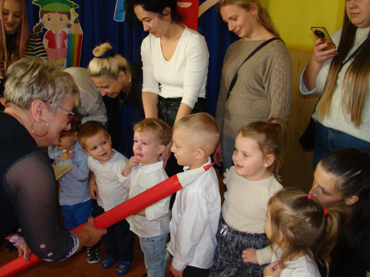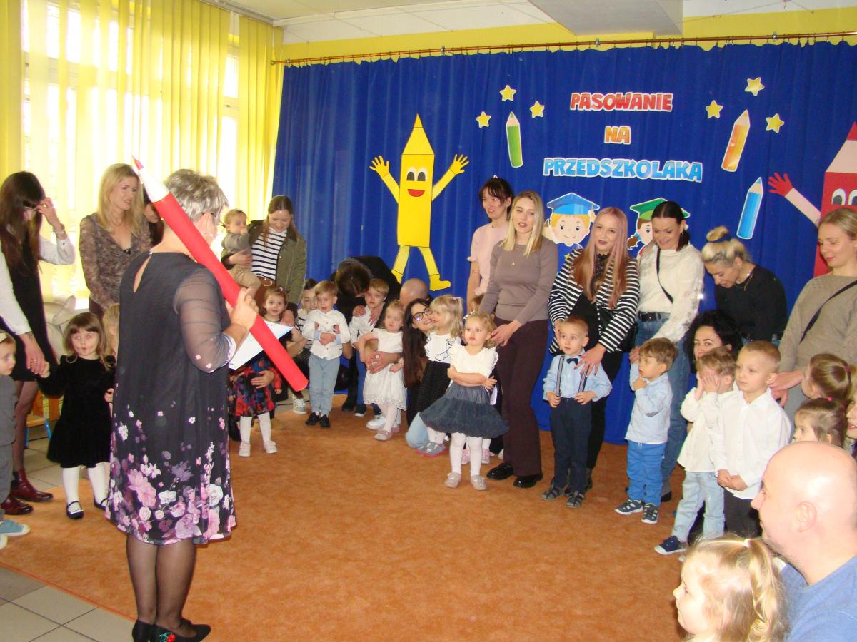 W dniu 29 października w naszym przedszkolu odbyło się uroczyste pasowanie na przedszkolaka. Podekscytowane i odświętnie ubrane dzieci zaprezentowały przygotowane piosenki, zagrały na instrumentach oraz zatańczyły z chustami. To ważny dzień dla naszych najmłodszych, którzy z uśmiechem, odwagą, radością i niekiedy z łezką w oku zostali przyjęci do grona przedszkolaków. Wszyscy otrzymali dyplomy i upominki. Uroczystość uświetniły występy starszych kolegów i koleżanek. Dla każdego był to dzień pełen emocji i uśmiechu. Gratulujemy! Witajcie w gronie Przedszkolaków!