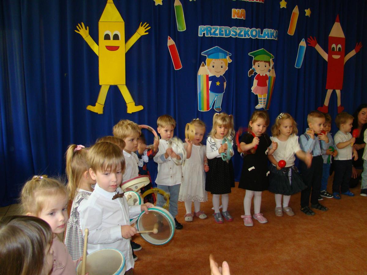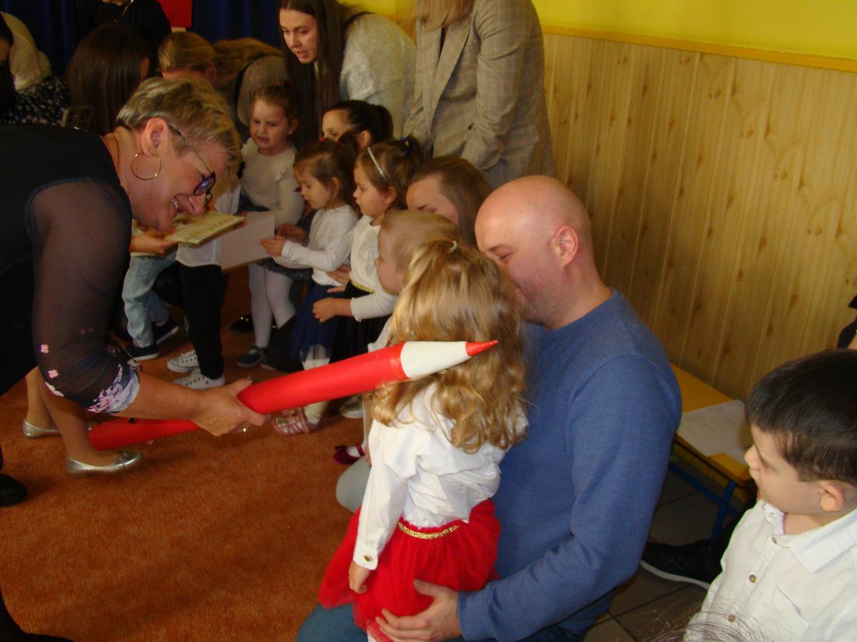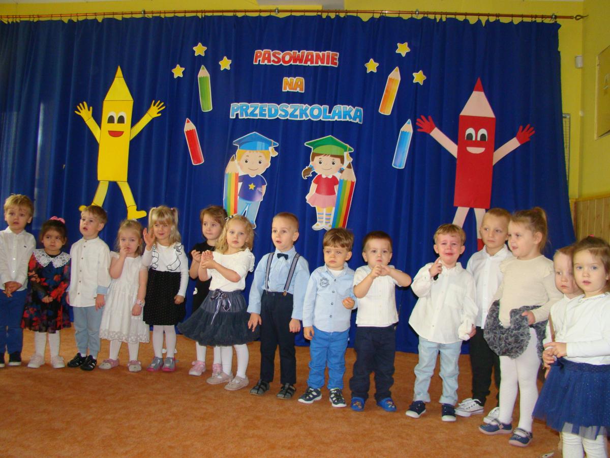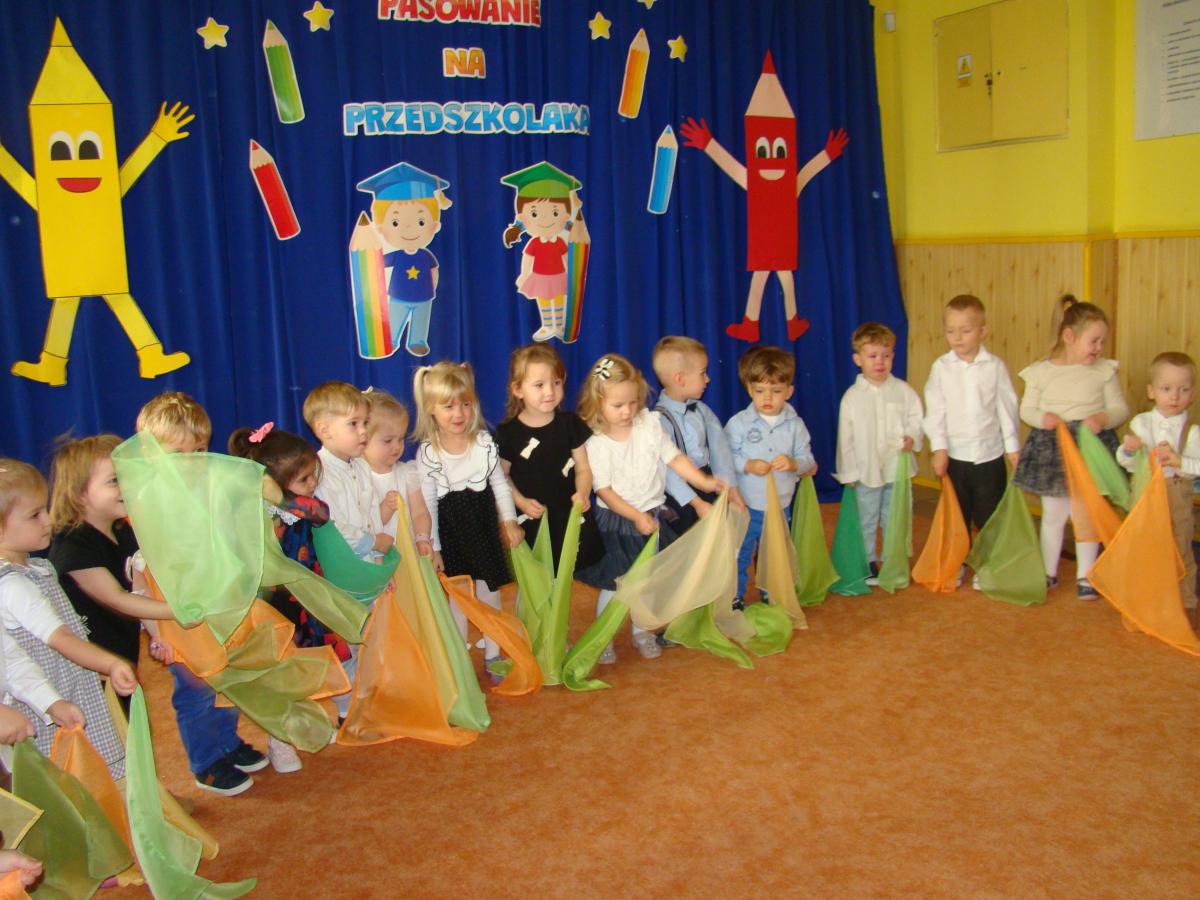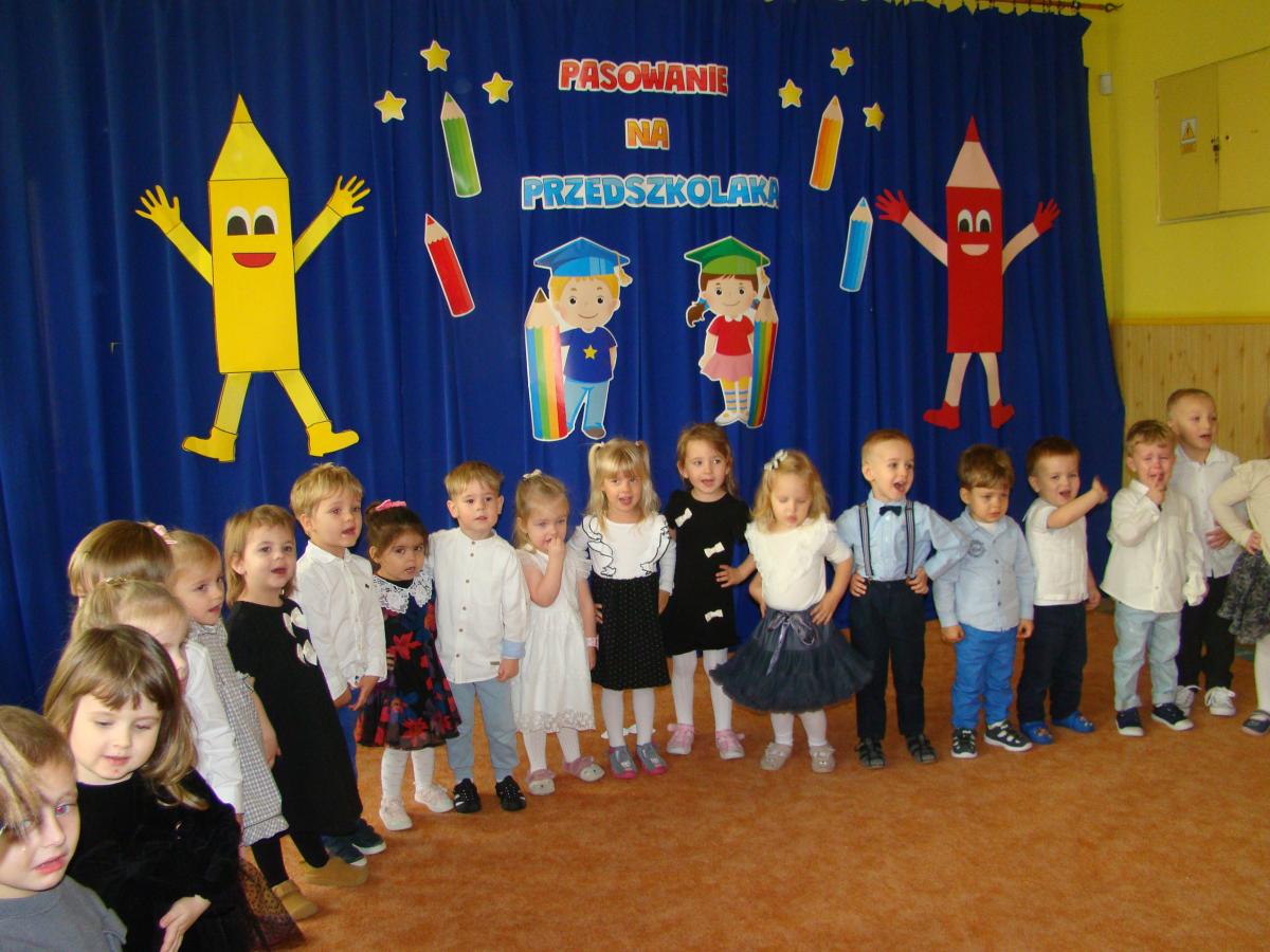 W dniu 29 października w naszym przedszkolu odbyło się uroczyste pasowanie na przedszkolaka. Podekscytowane i odświętnie ubrane dzieci zaprezentowały przygotowane piosenki, zagrały na instrumentach oraz zatańczyły z chustami. To ważny dzień dla naszych najmłodszych, którzy z uśmiechem, odwagą, radością i niekiedy z łezką w oku zostali przyjęci do grona przedszkolaków. Wszyscy otrzymali dyplomy i upominki. Uroczystość uświetniły występy starszych kolegów i koleżanek. Dla każdego był to dzień pełen emocji i uśmiechu. Gratulujemy! Witajcie w gronie Przedszkolaków!